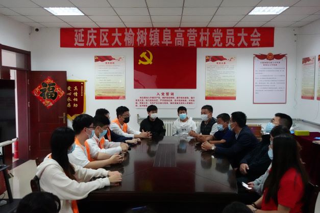 阜高营村地处延庆城区偏东南方向,北倚延庆母亲河妫河,东靠道教名山玉皇山,该村及周边几个村落在抗战时期为八路军平北抗日根据地之一。八路军第10团、解放军独立第2师和延庆区委先后在阜高营根据开展革命工作;当地村民传颂着革命烈士董玉亭的人物故事和特功臣张广玉相关事迹。在市教委派驻该村第一书记范新栋的引领下,实践团先后参观了延庆区委工作遗址、村中存留的地洞、防空洞和过去革命党员们住过的老房子。