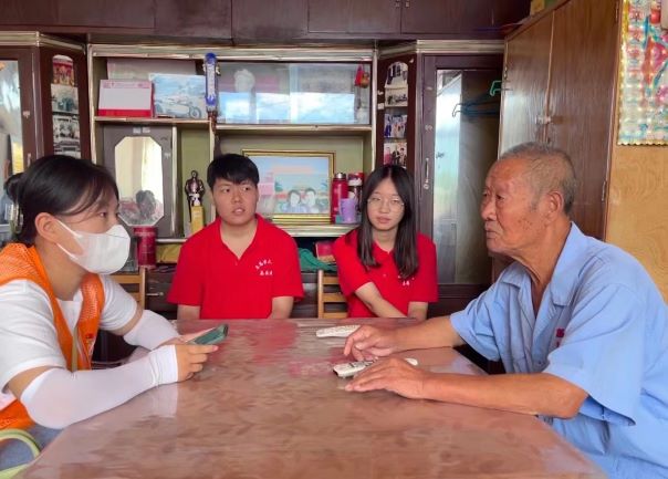 为了加强对党史的学习,缅怀先烈感悟精神,开阔视野,帮助大学生树立正确的世界观、人生观、价值观,实践团走入原村委书记张宝珠爷爷家。85岁高龄张爷爷,有着55年的党龄、30年的乡村工作经历。他当过大队会计、生产队会计,上过铁路、下过煤矿,当过民兵副团长。他说“听指挥,跟党走!我就像一块砖,哪里需要哪里搬。”张爷爷的父亲也是革命英雄,红色血液带带相传,在父亲耳濡目染的影响下,张爷爷也将自己的青春奉献给党,奉献给国家。赓续红色血脉,就要发扬革命精神。在张宝云爷爷家,他告诉同学们,他经常会给孩子们讲红色故事,带孩子们去外面的博物馆、展览馆参观了解祖国的红色历史。当年,他还和老伴一起动员鼓励鼓励自己的儿子参军报国,献身国防。