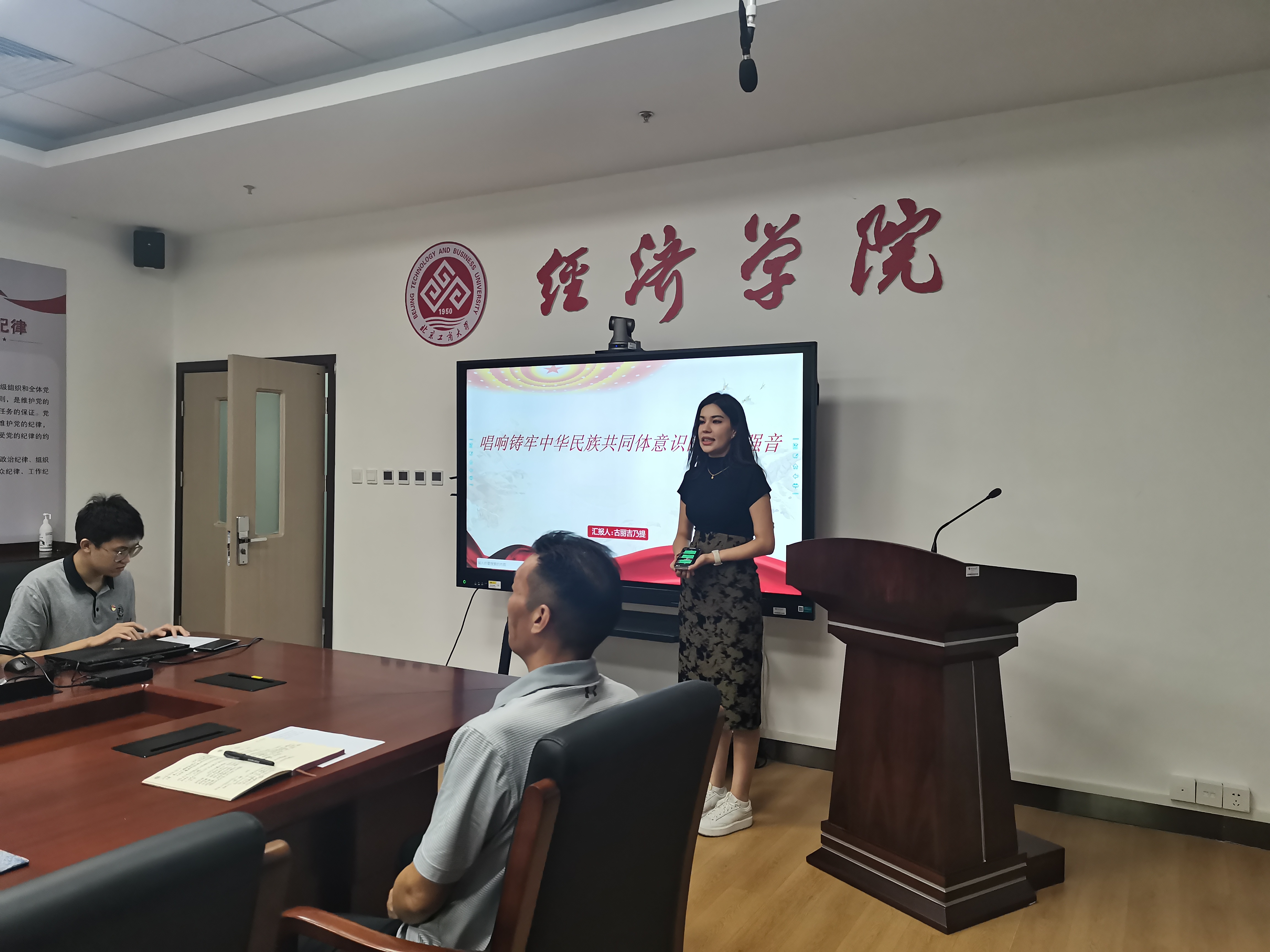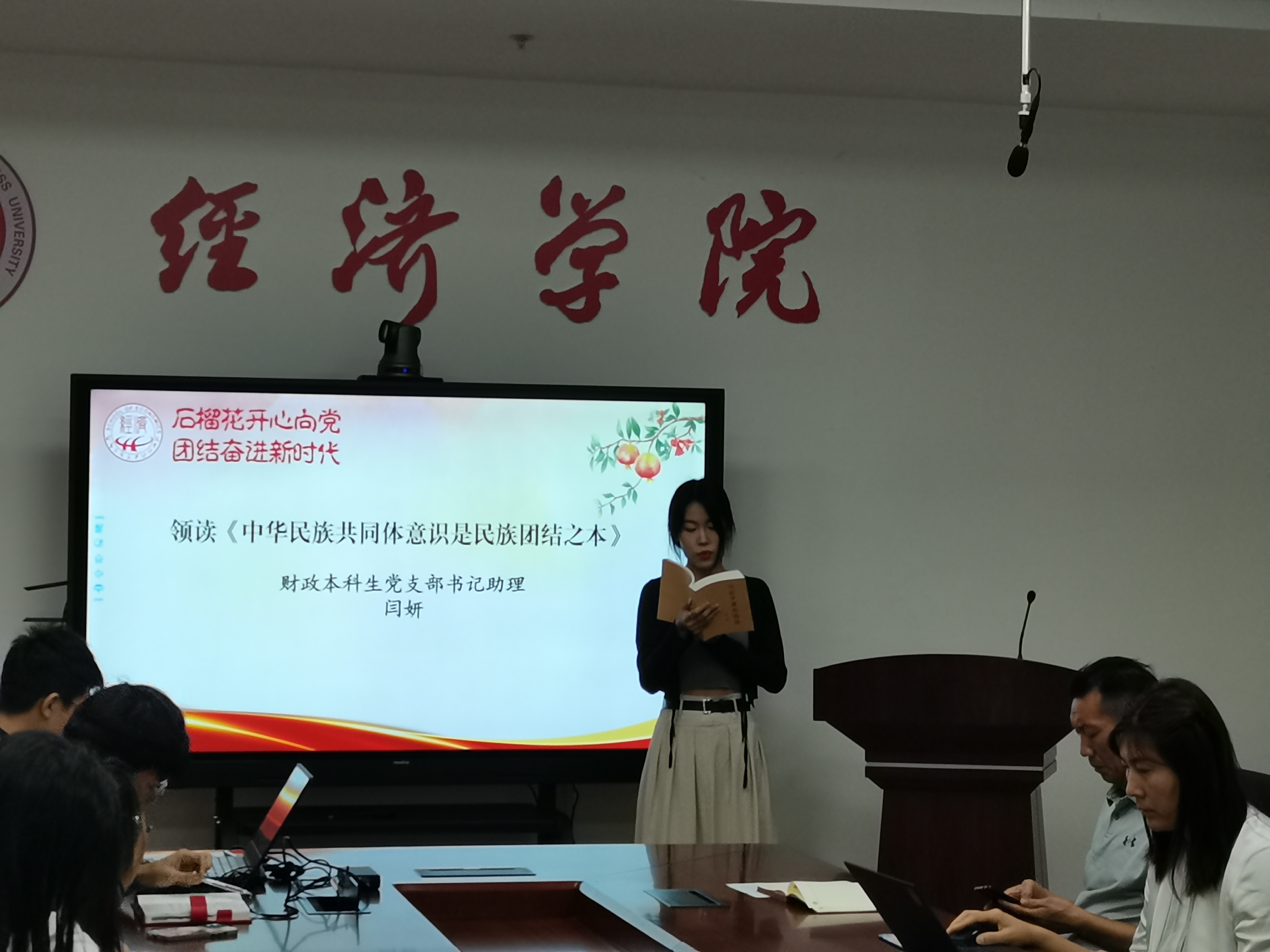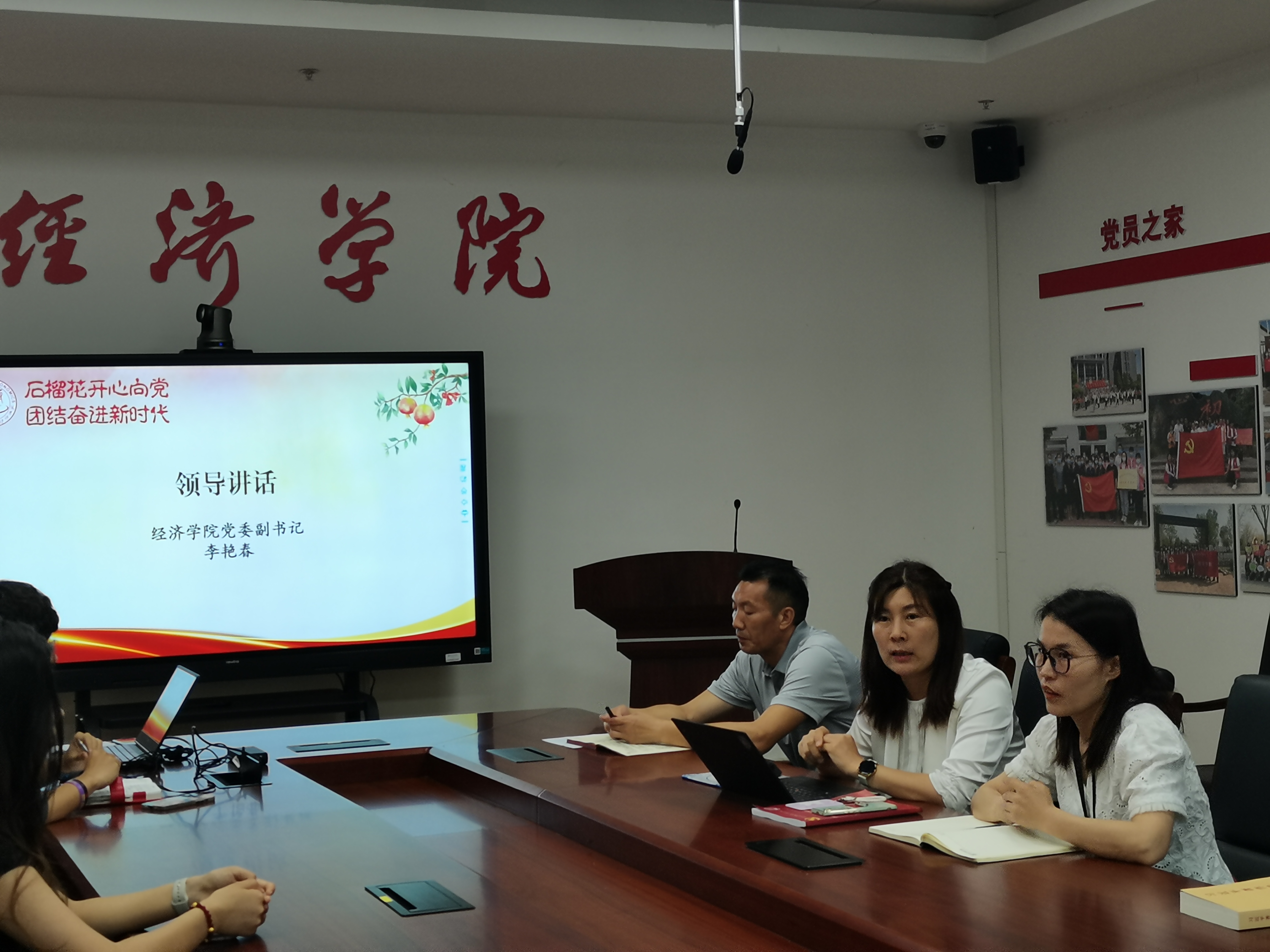 为深入学习宣传贯彻党的二十大精神,持续深化民族团结进步教育,促进各民族之间的交往交流交融,凝聚思想共识,共筑和谐奋进新篇章,6月27日,经济学院学生党支部读书班联合少数民族学生党员,于学院学生党员之家共同开展“石榴花开心向党,团结奋进新时代”铸牢中华民族共同体意识主题联学活动。学生处少数民族专职辅导员阿力达、学院党委副书记李艳春、 辅导员、学生党支部书记、少数民族学生党员、入党积极分子和少数民族学生代表共20人参与。