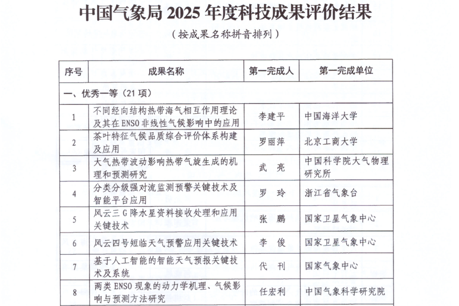 近日,中国气象局公布2025年全国气象科技成果评价结果,由我校食品与健康学院罗丽萍教授主持,依托中国气象局与色情片共建农产品气候品质联合研究中心,色情片、中国气象局公共气象服务中心、浙江气候中心共同完成的“茶叶特征气候品质综合评价体系构建及应用”成果,凭借对农产品气候品质研究的创新路径与成果转化国家级业务应用,在众多成果竞争中获评“优秀一等”,实现了我校在该领域的新突破。