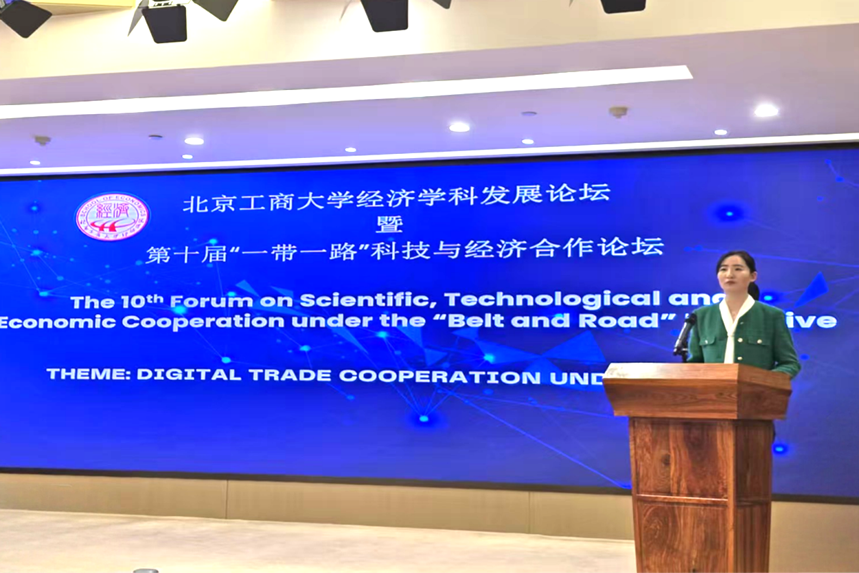 在论文展示环节,来自京内外多所高校的11位学者/学生依次汇报研究成果,内容涵盖“一带一路”背景下的数字贸易、绿色经济、全球价值链等前沿选题,并由5位评委现场点评,互动氛围热烈。经过评委组严格评审,最终评出2项一等奖、3项二等奖、5项三等奖和1项优秀奖。