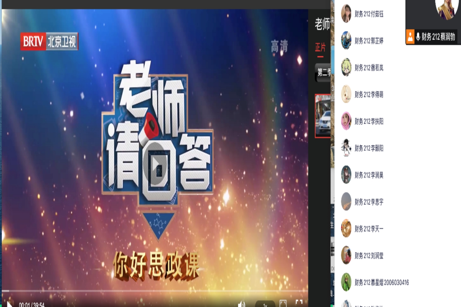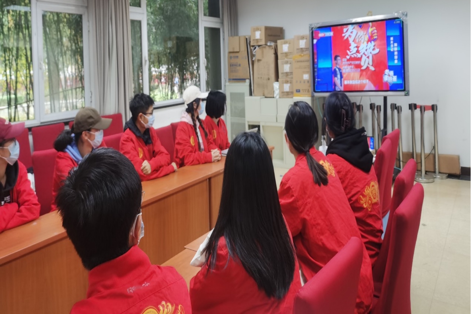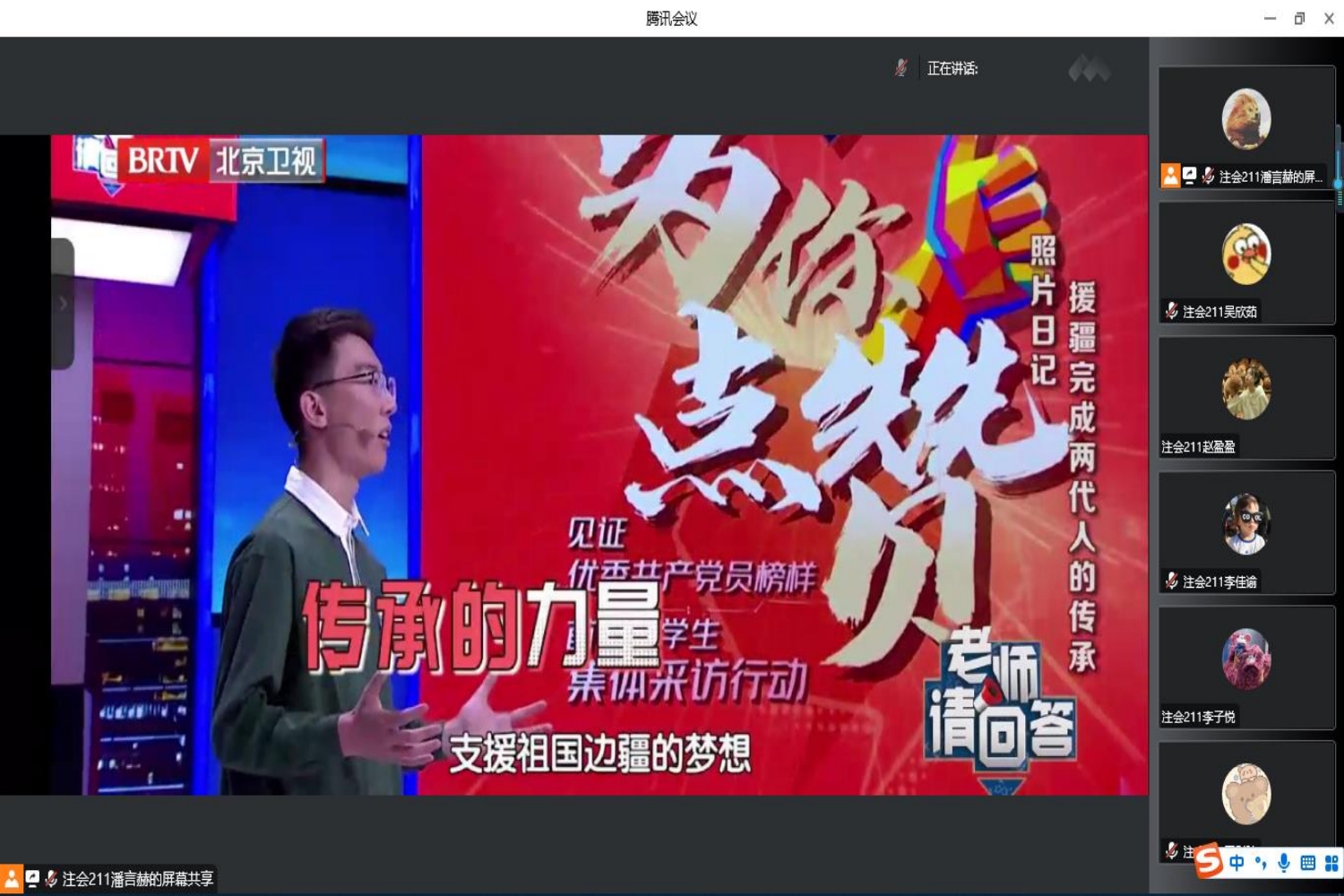 同一时间,商学院各班级、团支部也积极组织班级同学线上观看。部分班级采用统一观看的形式,同学们在腾讯会议中观看负责人播放的特别节目视频,也有班级采取个人观看的方式组织开展学习。