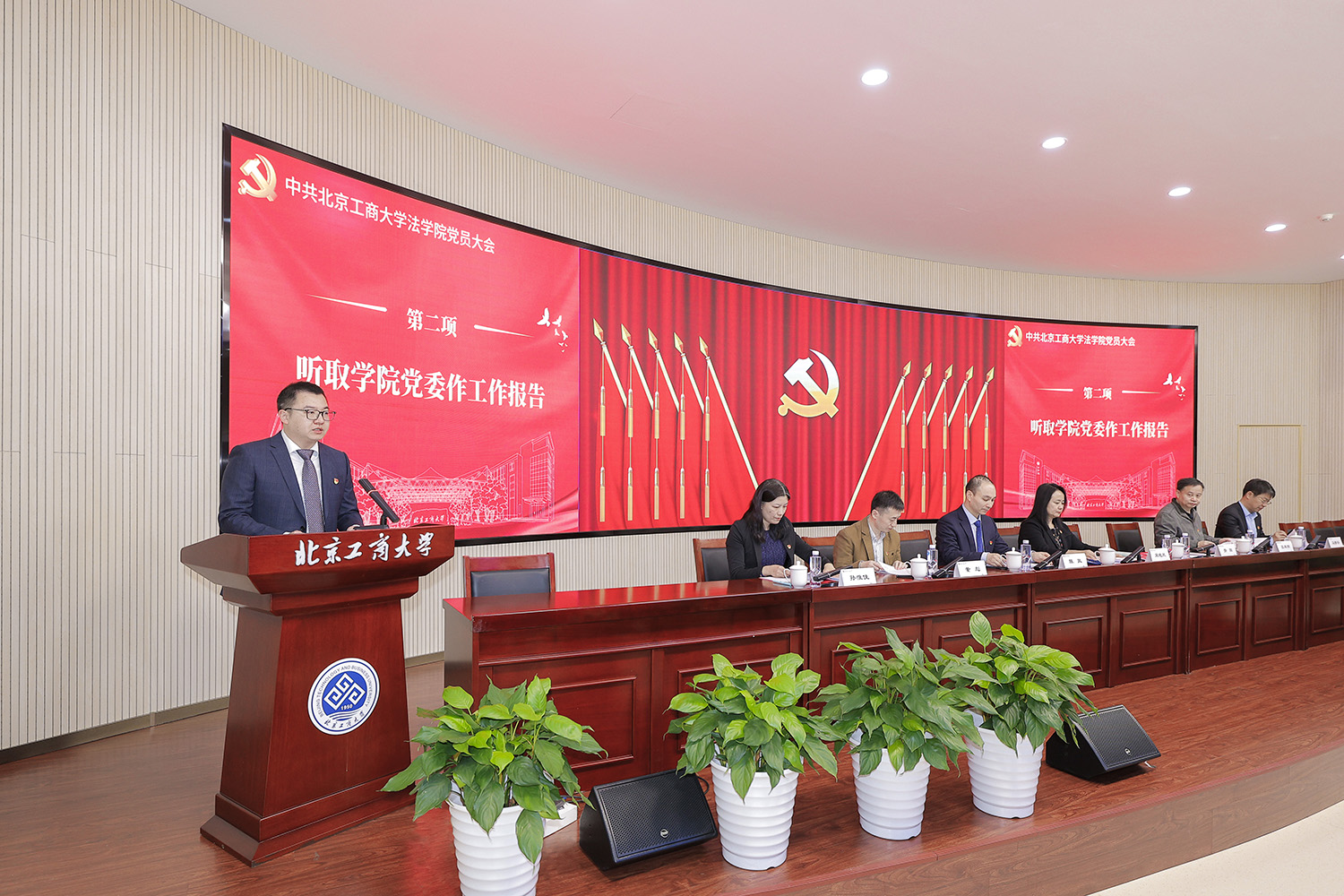 学院党委书记胥阳代表上一届党委作题为《坚定信心,实干争先,为建设市属一流知名法学院勇毅前行》的工作报告,回顾了学院党委过去五年的工作成绩并总结经验,展望未来五年学院的发展目标,提出了主要任务和工作举措,强调要探索建立党建与业务同谋划、同部署、同推进、同落实的工作机制,努力建设具有“国际范儿”“创新味”“首都范儿”“接地气”特色的市属一流知名法学院。下一步,学院党委将着重做好五方面的工作:一是牢牢掌握党对教育工作的领导权,二是用心用情培养高素质法治人才,三是聚力打造不可替代的特色学科科研优势,四是多措并举建强高水平师资队伍,五是集中力量推动高质量交流合作。报告号召全院师生进一步振奋精神,以创新促发展,以开放谋发展,以特色强发展,以质量保发展,在深化改革上善作善成,为学校高水平研究型大学建设作出新的更大贡献!