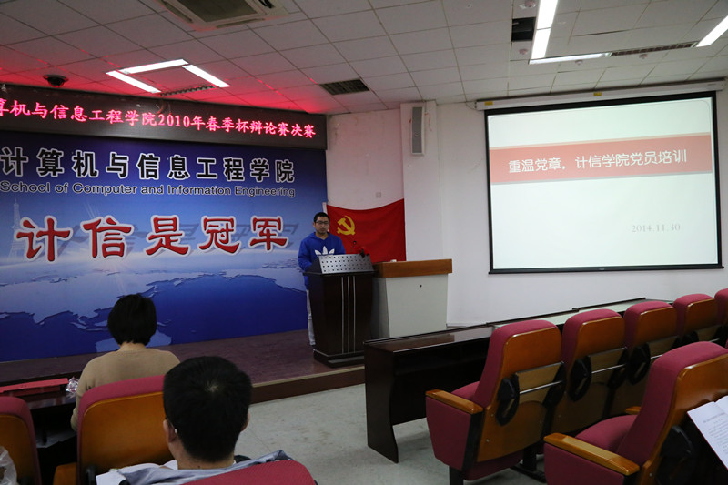 为进一步加强学生支部建设,深化学生党员党性教育,在大学生中积极培育和践行社会主义核心价值观,计信学院于11月30日组织全体学生党员、预备党员开展了主题为“重温党章,争做模范”的专题培训。