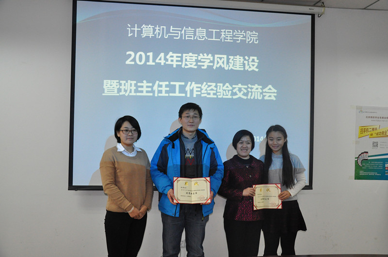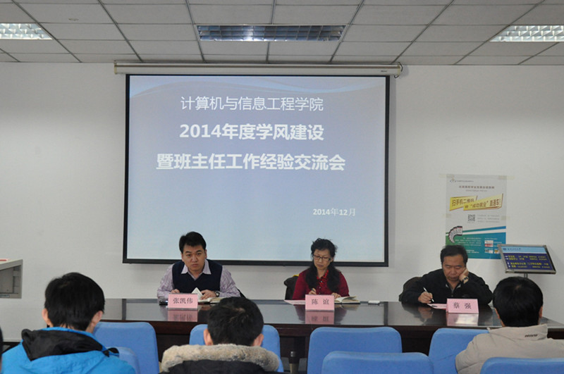 为进一步加强学风建设,服务人才培养,12月1日,在本学期开学100天之际,计信学院在阜成路校区召开了2014年度学风建设暨班主任工作经验交流会。学院领导陈谊、蔡强、张凯伟及系主任、辅导员、班主任参加了会议。