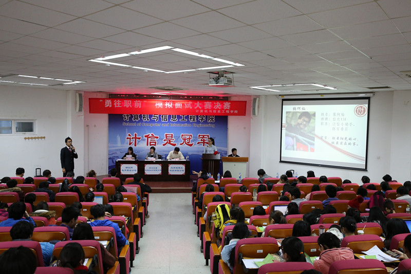 12月5日,良乡校区工三102座无虚席,由学校就业指导中心与计算机与信息工程学院主办、深受学生欢迎的“勇往职前”模拟面试大赛(第三届)决赛在此举行。