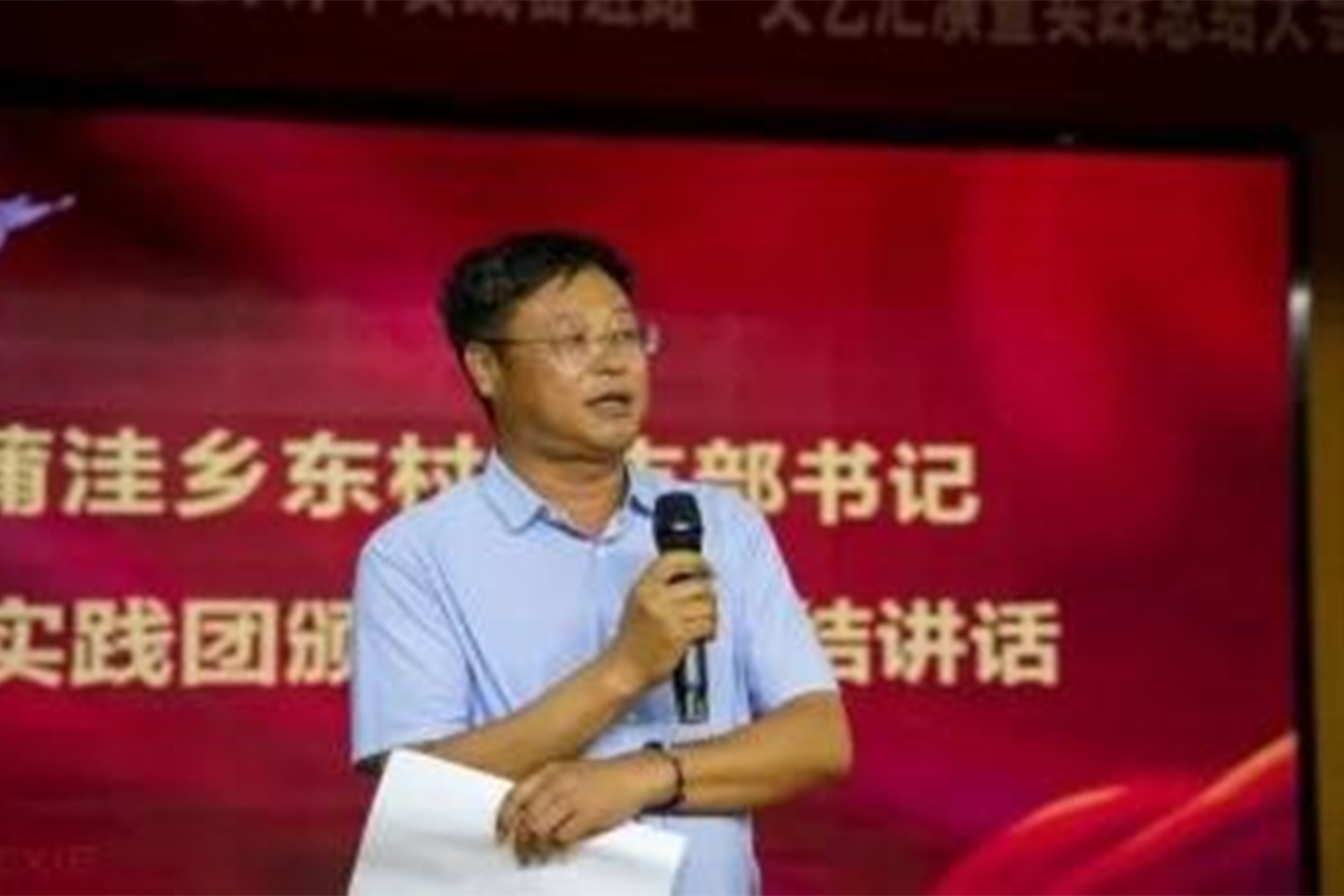 数学与统计学院副院长罗玉波、蒲洼乡东村村党支部书记孙广亮为实践团颁奖并进行总结讲话。罗玉波对同学们这四天的实践进行总结,对同学们在实践中“敢想、敢做、能做、能实现”表达了肯定,同时感谢蒲洼东村给予实践团的大力支持和热情款待,也希望师生以此次东村之行为起点,关注社会民生,心系国家发展,为乡村振兴贡献自己的力量!孙广亮表示衷心感谢实践团的到来,近年来,蒲洼乡东村用“红色引擎”赋能“绿色发展”,绘就绿色发展新画卷,希望继续开展共建活动,共建美丽蒲洼。