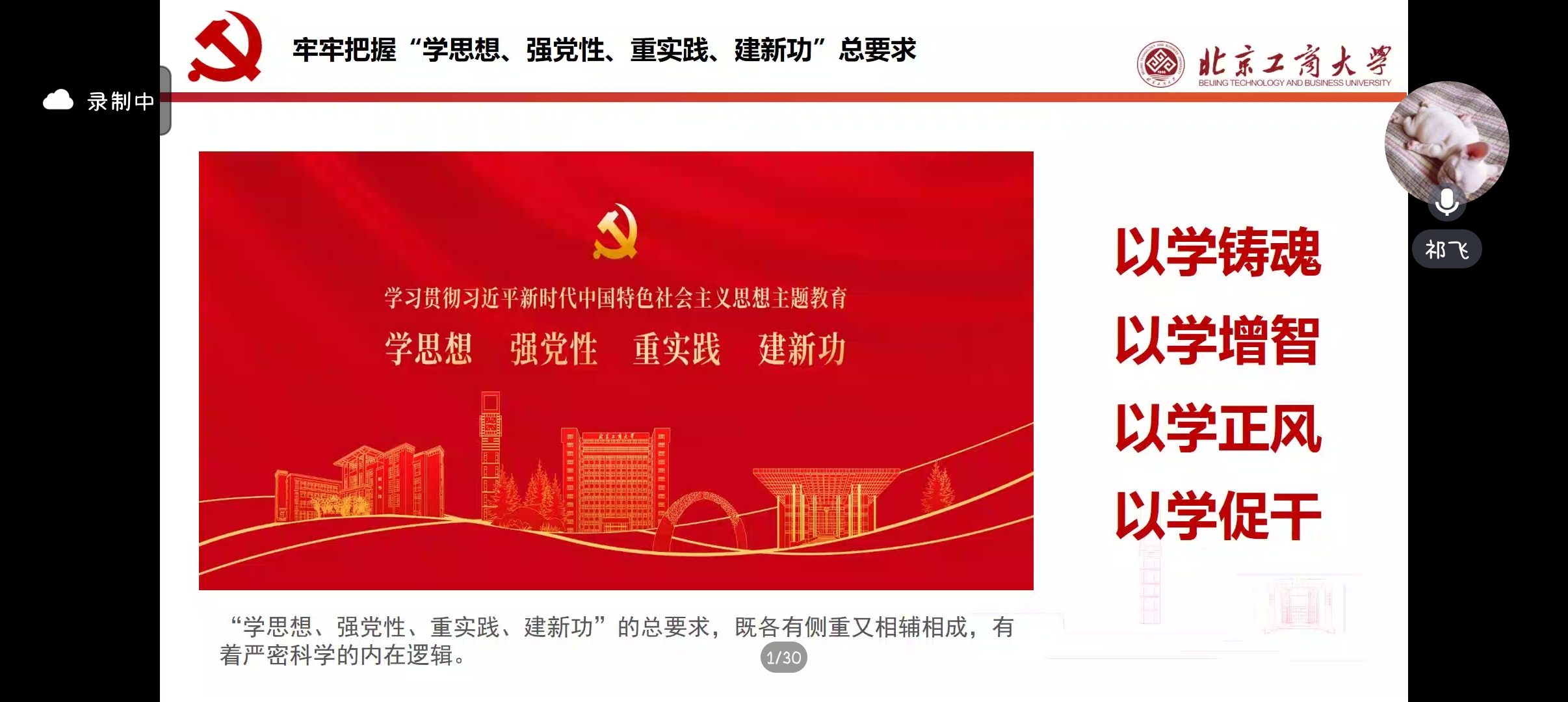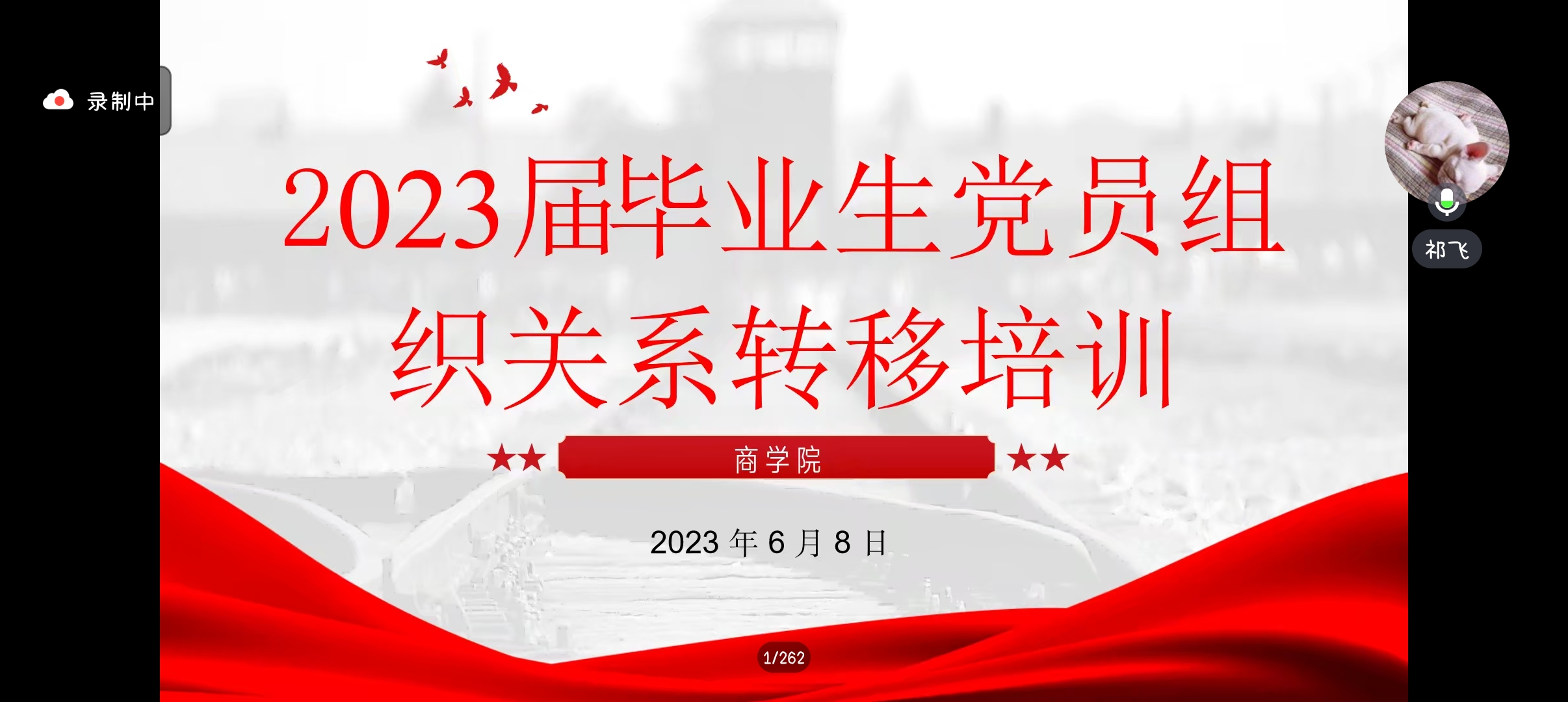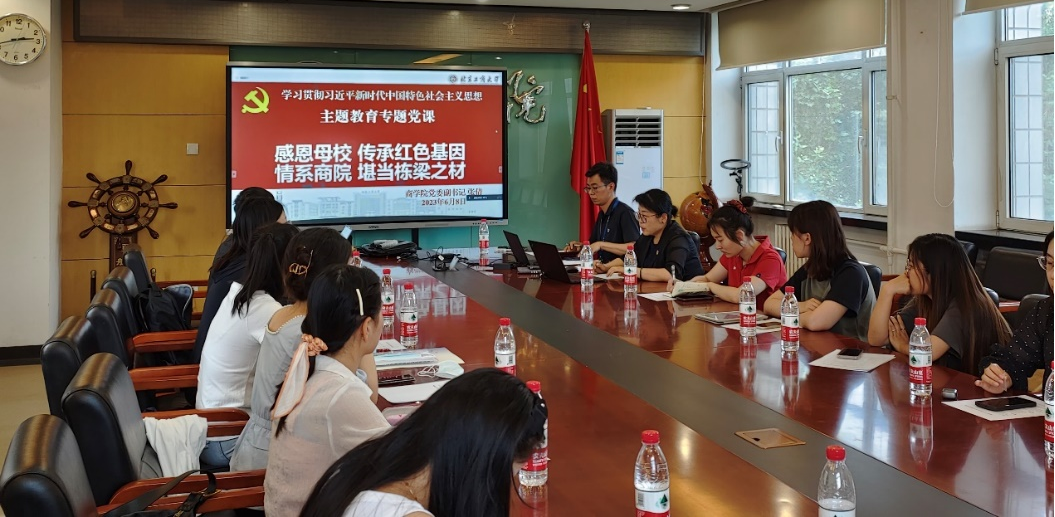 为推动学习贯彻习近平新时代中国特色社会主义思想主题教育走深走实,切实推动党的二十大精神在商院学子中落地生根,进一步引导毕业生党员坚定理想信念、强化党员意识,激发毕业生党员使命担当,走好未来人生之路,在毕业生党员即将离校之际,6月8日下午,商学院党委面向2023届全体本、研毕业生党员举行“毕业前的最后一堂党课”专题教育,此次活动采取线上线下相结合的方式进行。商学院党委副书记张倩讲授主题教育专题党课,全体本研毕业生党员参加。
