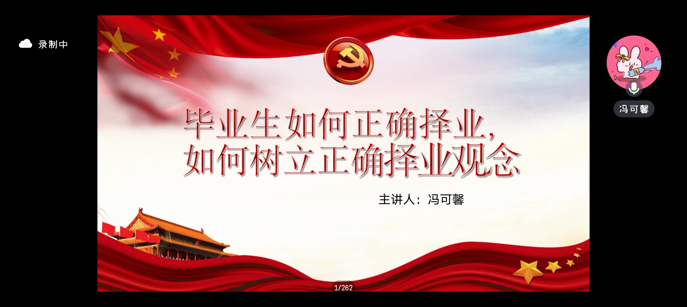 树立正确择业观,努力实现人生价值。2019级辅导员冯可馨以“只要有志向就会有事业,只要有本领就会有舞台”激励毕业生党员要树立正确的择业观就业观,从实际出发选择职业和工作岗位。鼓励党员响应国家号召,积极投身到基层艰苦的地区,到国家建设的第一线去施展自己的抱负,为实现第二个百年奋斗目标贡献自己的力量。
