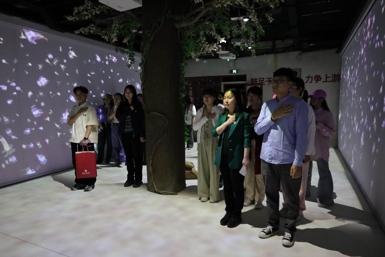 “沉浸式”现场教学最后,全体学员肃立于党旗前,庄重重温入党誓词。参与师生一致表示,本次学习方式新颖、内容丰富,情感真实而深远,让大家不仅“看见”焦裕禄同志,更“走进”他的精神世界。