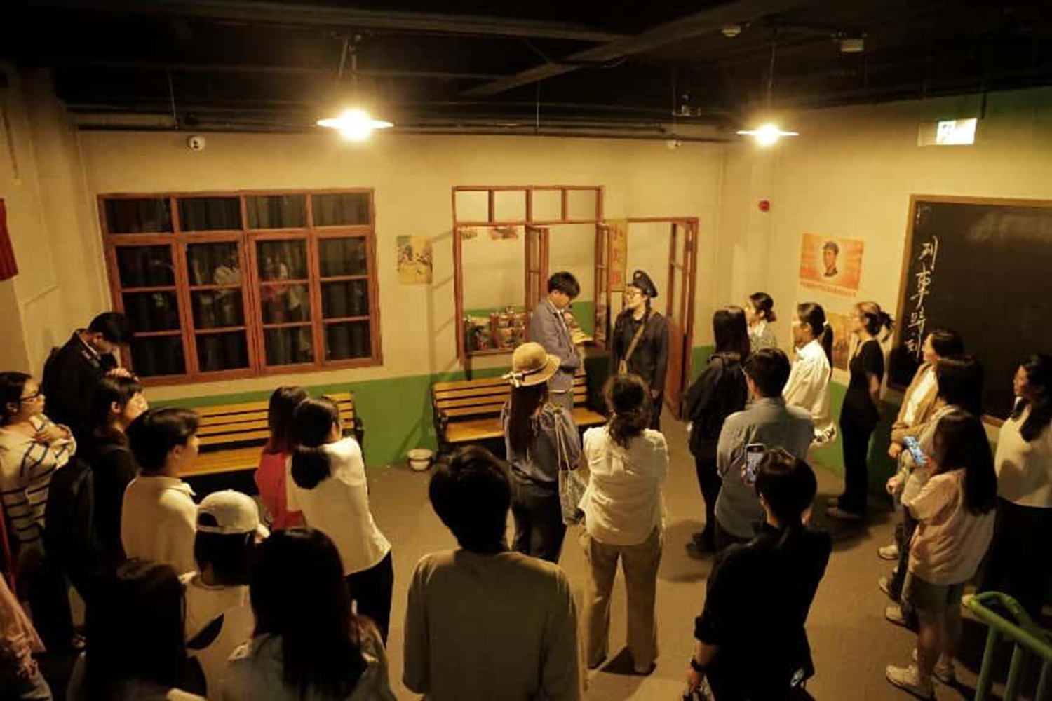 在“沉浸式”党课《足迹》体验环节中,在声光电多媒体互动系统支持下,教学内容以全景方式铺陈展开,师生们不仅能够视觉、听觉同步沉浸,还通过剧场式互动设置,亲身参与到剧情之中——成为焦裕禄同志的同事,在不同身份视角中切身体会他为治沙治涝、排盐种树、走村访户所经历的艰辛与信仰。当教学场景定格于焦裕禄手捧黄土、顶风踏雪深入沙丘调研的画面时,一句“吃别人嚼过的馍没味道”回荡在空间中,震撼直抵人心。