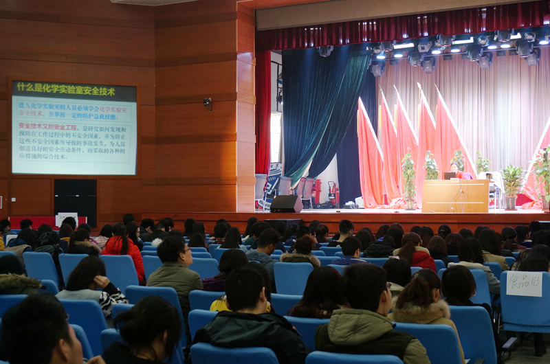 为进一步巩固“平安校园”创建工作成果,增强师生消防安全意识和自防自救能力,食品学院分别组织全体研究生和本科毕业生进行化学实验安全培训,切实保障实验安全。