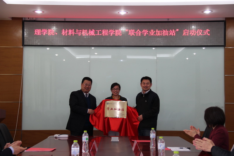 仪式的最后,两学院主管教学的副院长共同为 “联合学业加油站”揭牌,此举措反映了两学院将加强学风建设、同学们互帮互助共同提升落到实处,为进一步加强学风建设,扩大学业帮扶覆盖面,整合资源,形成合力。