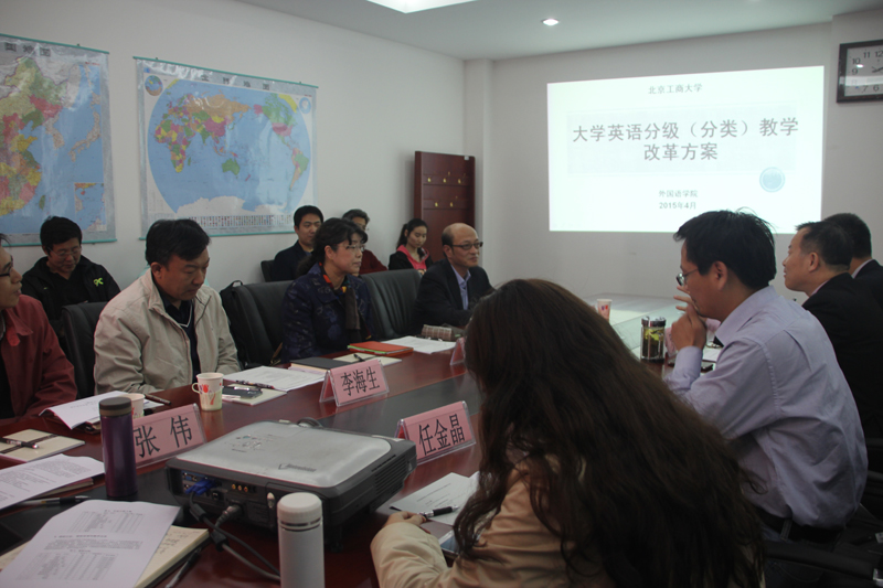 4月15日,外国语学院邀请校内外专家在阜成路校区召开了大学英语分级教学改革方案研讨会。来自色情片市高教学会大学英语研究会的专家同我校相关部门领导、专家汇聚一堂就大学英语分级教学改革进行研讨。外国语学院院长罗朝能主持会议。