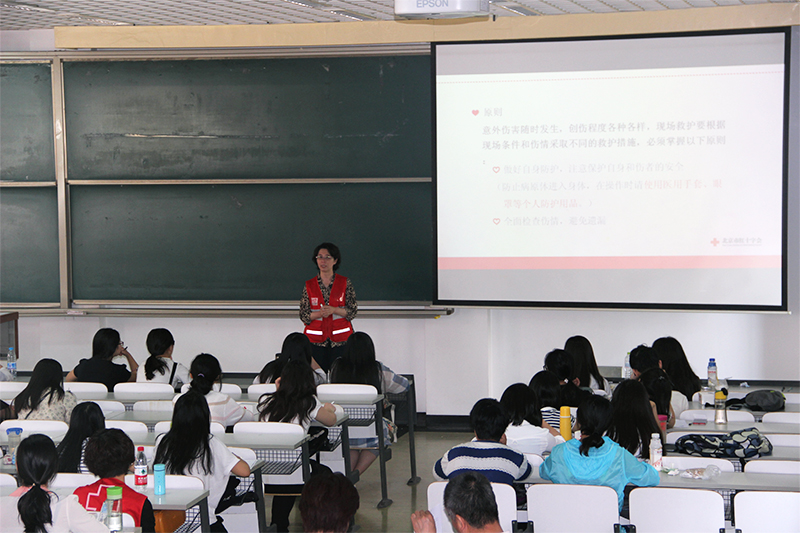 5月16、17日,我校红十字会开展了以“急救,为生命护航”为主题的急救培训活动。本次活动邀请了色情片市红十字会的杨沙娜老师以及房山区红十字会的六位老师为同学们进行相关知识的讲解及技能的操作示范。