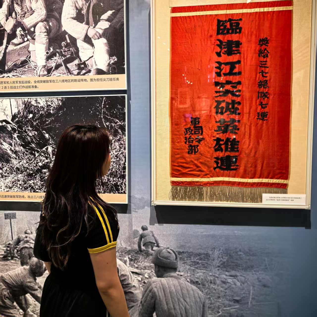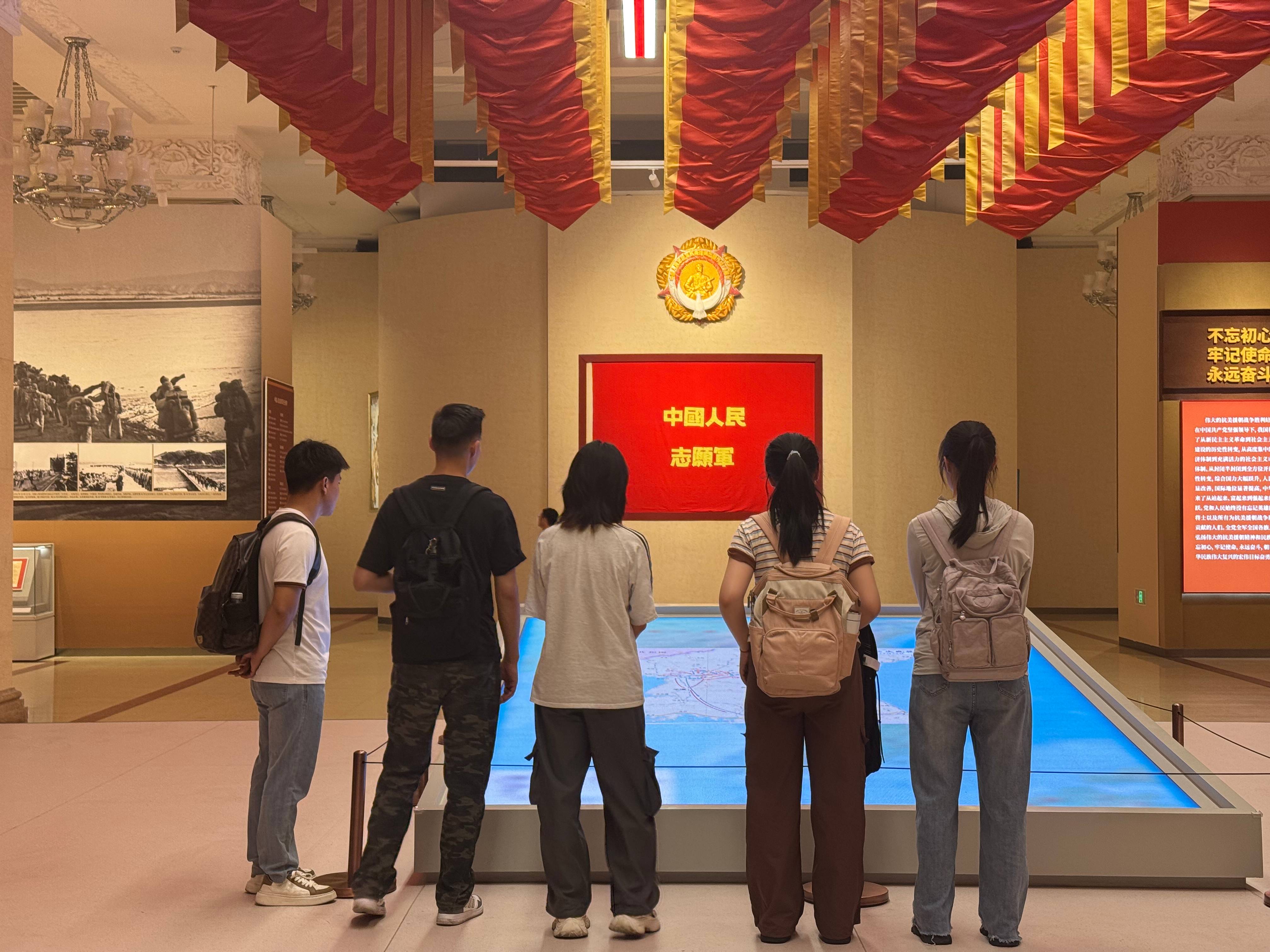 党员发展对象们缓缓走过海陆空军基本陈列展、革命战争陈列展和抗美援朝战争馆。锈迹斑斑的枪械、布满弹痕的旗帜、泛黄的战略地图……每一件文物都无声诉说着人民军队从南昌起义到抗美援朝战争的峥嵘历程。在“临津江突破英雄连”的旗帜前,同学们久久驻足,深刻体悟到革命先辈“寸土不让”的血性担当。