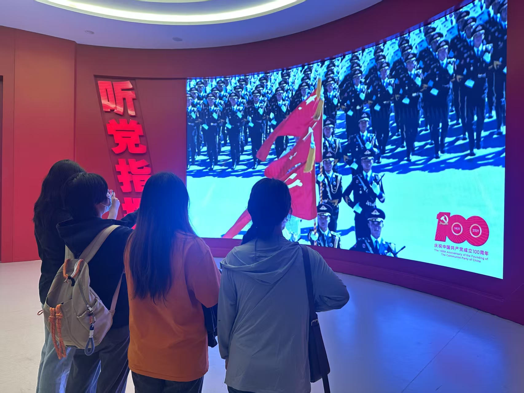 最后,党员发展对象们参观了“领航强军向复兴——新时代国防和军队建设成就展”和“在党的旗帜下——人民军队庆祝中国共产党成立100周年主题展”。在这里,他们看到了我国核工业从无到有的突破,以及航空工业从引进仿制到自主创新的跨越。从早期的歼-5战斗机到如今的歼-20隐身战机模型,这些展品清晰勾勒出我国从“跟踪仿制”到“自主创新”的逆袭之路。