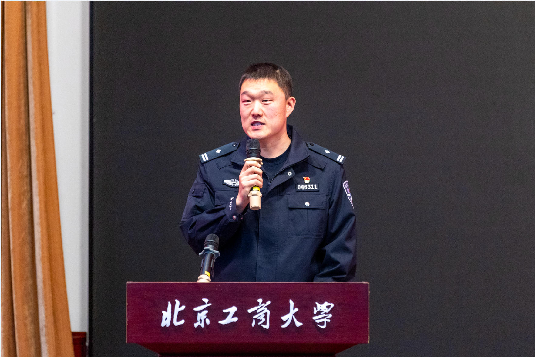 聘任仪式结束后经济学院金科242班宣瑶同学代表2024-2025学年优秀“反诈专员”进行工作感想发言:一是在“学”上下功夫,筑牢反诈思想根基,积极参加每一次反诈专员培训,从识别“校园贷”“刷单返利”到掌握“冒充客服退款”的诈骗套路,努力将每一个知识点内化于心;二是在“查”上做细致,织密校园反诈网络,推动建立班级“反诈小贴士”常态化推送机制,确保信息及时传达、全员覆盖;三是在“审”上走在前,激发群体反诈合力,通过“以点带面”的方式,带动身边同学共同关注反诈、学习反诈、参与反诈,推动反诈从“个人警觉”走向“集体防控”。数学与统计学院研253班隋馨磊同学代表2025-2026学年新聘“反诈专员”发言表示:一是当好“预警员”,做风险隐患的“吹哨人”,密切关注新型诈骗动态,通过班级群、主题班会等形式,及时传递最新反诈案例与防范技巧,为同学们拉响思想上的“第一道警报”;二是当好“守护员”,做同学身边的“贴心人”, 当有同学收到可疑信息、遇到转账困惑时,第一时间为他们耐心解答、协助核实、及时上报,用实际行动构筑起一道同学身边的 “安全屏障”;三是当好“宣传员”,做反诈知识的“播种者”,创新反诈宣传形式,通过生动的情景剧还原骗局,或制作简洁明了的反诈海报,让反诈知识自然地融入大家的日常,帮助每一位同学练就识破骗局的“火眼金睛”;商学院财务231尚博珩同学代表2025-2026学年新聘“反诈宣传大使”发言表示,将牢记反诈宣传大使身份,在“北工商反诈三级体系”中做好纽带衔接,在校、院两级反诈宣传、宣讲工作中发挥作用,不断培养独立开展学院反诈宣传及协同完成校级反诈宣传的综合能力,成为校园学生反诈工作的核心力量,为守住同学们的钱袋子尽绵薄之力。