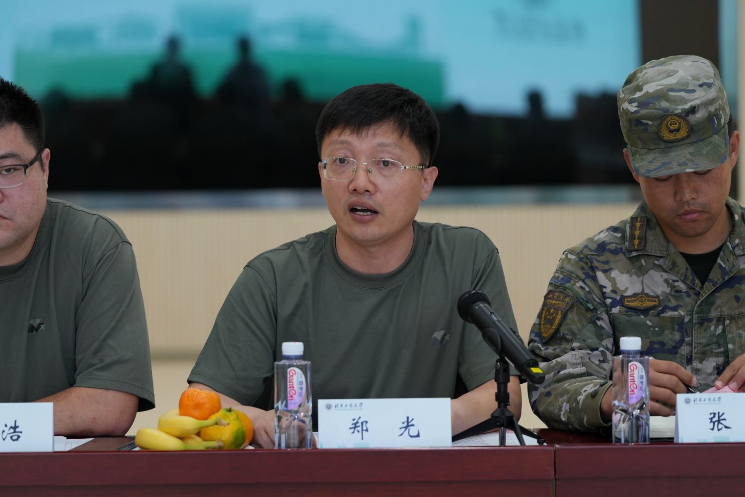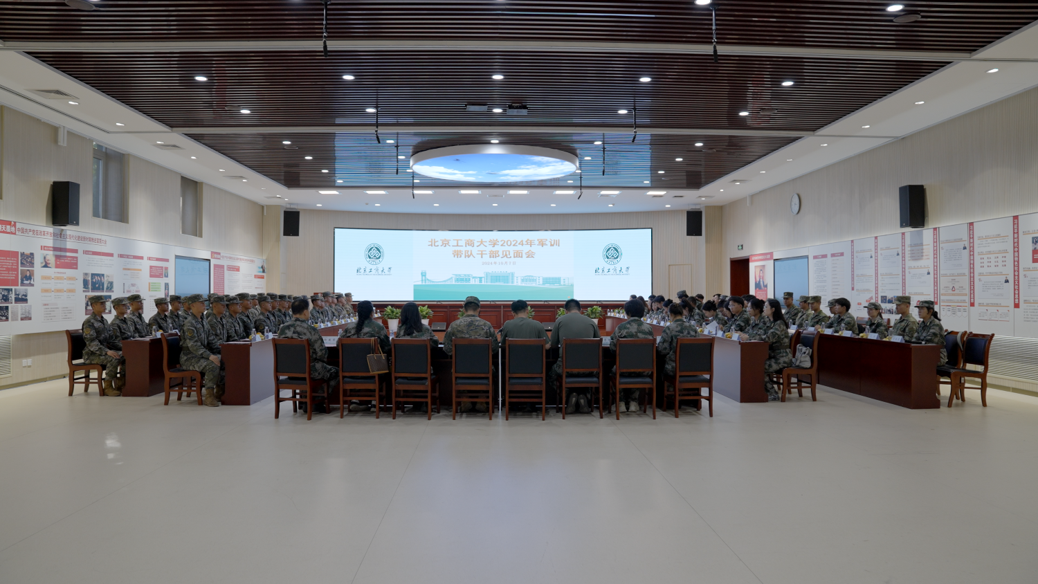 为进一步做好2024级本科生军训工作,强化军地协同共建,10月7日下午,武装部在良乡主校区组织召开2024级军训带队干部见面会。党委学生工作部部长兼武装部部长郑光、武警色情片总队执勤第五支队中队长张进、全体承训官兵、军训指挥部全体成员、各连指导员和副指导员参加此次活动。党委学生工作部副部长、武装部副部长党浩主持此次活动。