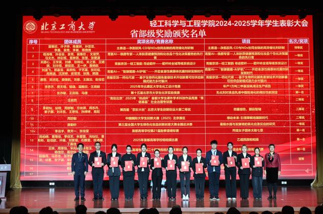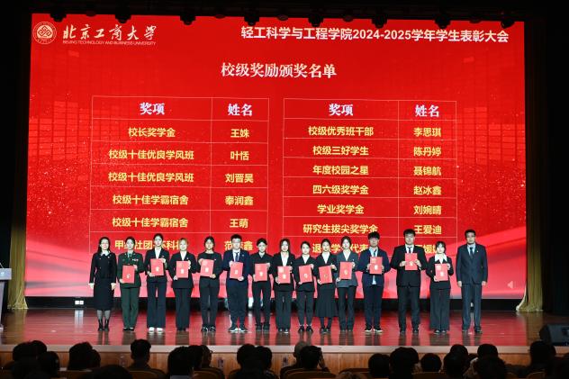 在热烈的掌声中,轻工科学与工程学院 2024 - 2025 学年学生表彰大会圆满落幕!此次表彰大会不仅为莘莘学子树立了奋进的标杆,更凝聚起全院师生锐意进取、再创新佳绩的磅礴力量。未来,学院将持续立足轻工学科前沿,聚焦服务国家和首都的发展战略需求,以更为优异的成绩,为学院的高质量发展以及学校高水平研究型大学的建设贡献力量!