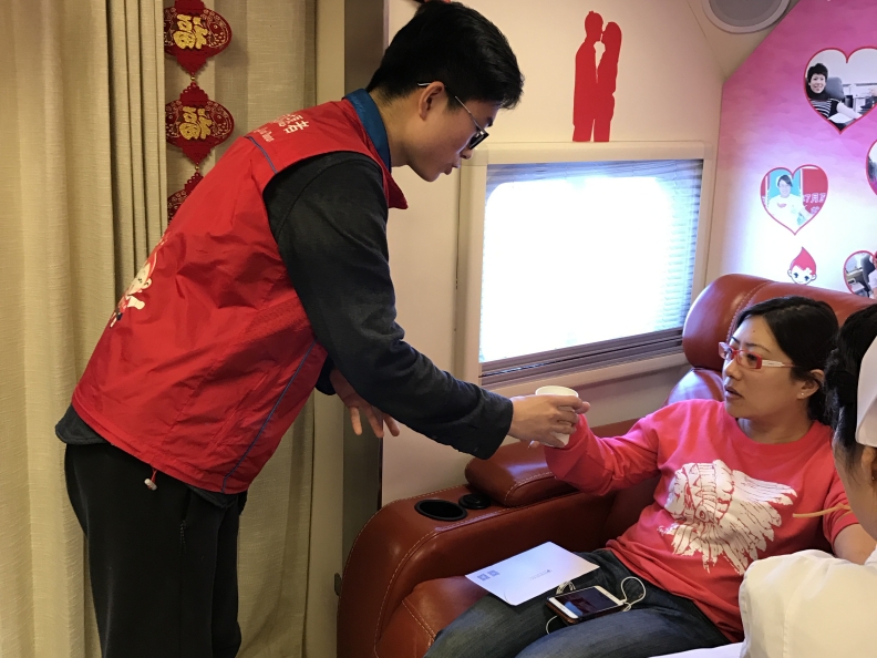 献血车志愿服务分为车上关爱岗与车下招募岗。车下招募岗的志愿者不畏寒暑,始终以饱满的热情向市民普及献血知识、协助填写登记表;车上关爱岗则贴心照顾每位献血者,递上一杯温水、一份面包,陪伴他们舒缓心情,保障献血过程温暖顺畅。