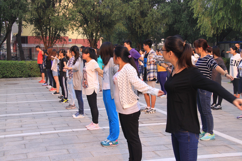 9月16日,艺术与传媒学院团总支书记徐亮,辅导员王一筱、8名退伍学生、学生会干部代表和各班班主任助理组织学院2015级382名学生于我校文科实践中心楼外的场地开展了晨练、晨读活动。在老师和退伍学生的组织带领下,2015级新生围绕规划的路径开展晨跑运动,摆脱了大清早的困意,以抖擞的精神迎接新一天的到来。接着,在各班班主任助理的带领下,同学们按不同班级分为几个方队,各自进行不同的运动项目和晨读。在学生会文艺部的示范引领下,部分班级新生学习了广场健身操《今夜舞起来》的基本动作,刚开始练习难免生疏,但新生们依旧尽力完成每一个动作,克服困倦懒惰,积极加入到晨练活动中来。