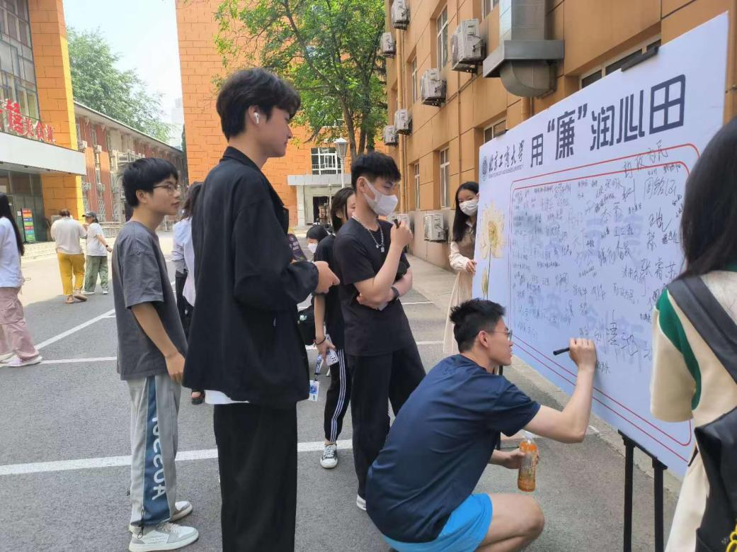 为营造良好的校园廉洁文化,商学院研究生会于5月14日11:00-13:00在阜成路西校区食堂门口举办“清风扶正气 廉洁伴我行”廉洁承诺签名活动。此次活动是商学院开展学生廉洁主题教育系列活动之一,共吸引了来自商学院、国际经管学院、轻工科学技术学院、生态环境学院等7个学院、180余名同学积极参与。