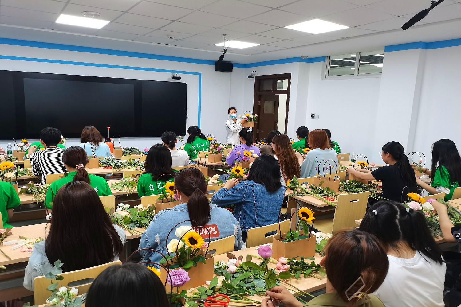 6月6日,学生处在良乡主校区组织开展“永远跟党走 花香满校园”大学生劳动教育花艺活动。活动现场花香四溢,来自“求真”劳动教育兴趣小组的近50名同学参与本次活动。