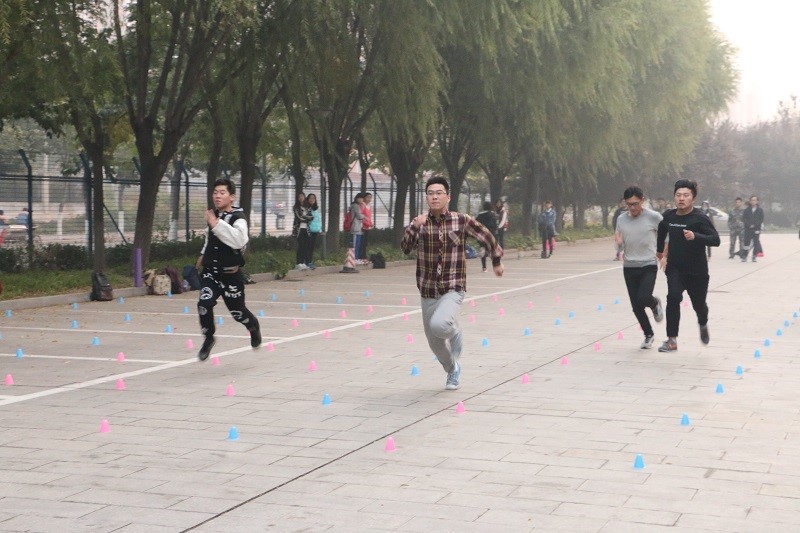 在本学期11月初,艺术与传媒学院大一新生晨练活动中加入了“铁人五项”心理素质拓展训练,此项目是学院在学校心理健康宣传月内开展的院级活动之一,由院学生心理部策划并组织开展,该项训练是为了提升大一新生身体素质及提高体质测试成绩。“铁人五项”包括俯卧撑或仰卧起坐、立位体前曲、蛙跳、蛇形跑及五十米跑共五个运动项目。