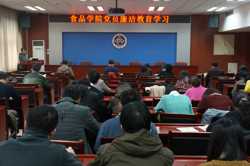 12月9日,食品学院分党委组织开展教师党员纪律教育专题学习,学院全体教工党员参加,专题学习由分党委书记何猛主持。