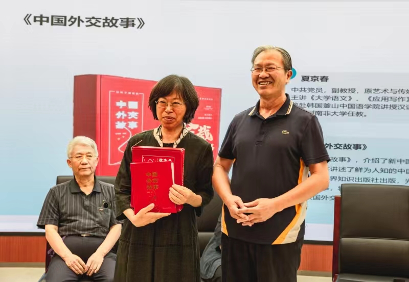 活动邀请了翁莉娟、夏京春、吴建刚、王治宇四位退休教师作为分享人,从各自的阅读经历及专业背景出发,分享好书并畅谈自己的读书感悟。原艺术与传媒学院退休教师夏京春副教授推荐了《中国外交故事》一书,带领学生了解和感受大国外交的智慧与风采,并在分享结束后向图书馆捐赠了《中国外交故事》精装本;马克思主义学院退休老师吴建刚副教授为大家推荐了四卷本《毛泽东选集》,他说《毛泽东选集》诞生的历史背景和时代环境虽然远去,但其中蕴藏的马克思主义的立场、观点、方法仍具有重要现实价值,建议同学认真阅读;法学院退休教师王治宇副教授为大家推荐了《山水有清音》,联系自身的生活经历将书里的内容娓娓道来;原计算机与信息工程学院退休教师翁莉娟教授则推荐了《当代数学大师》《微积分的创立者及其先驱》两本书,并用生动的语言分享了趣味的数学学习故事。