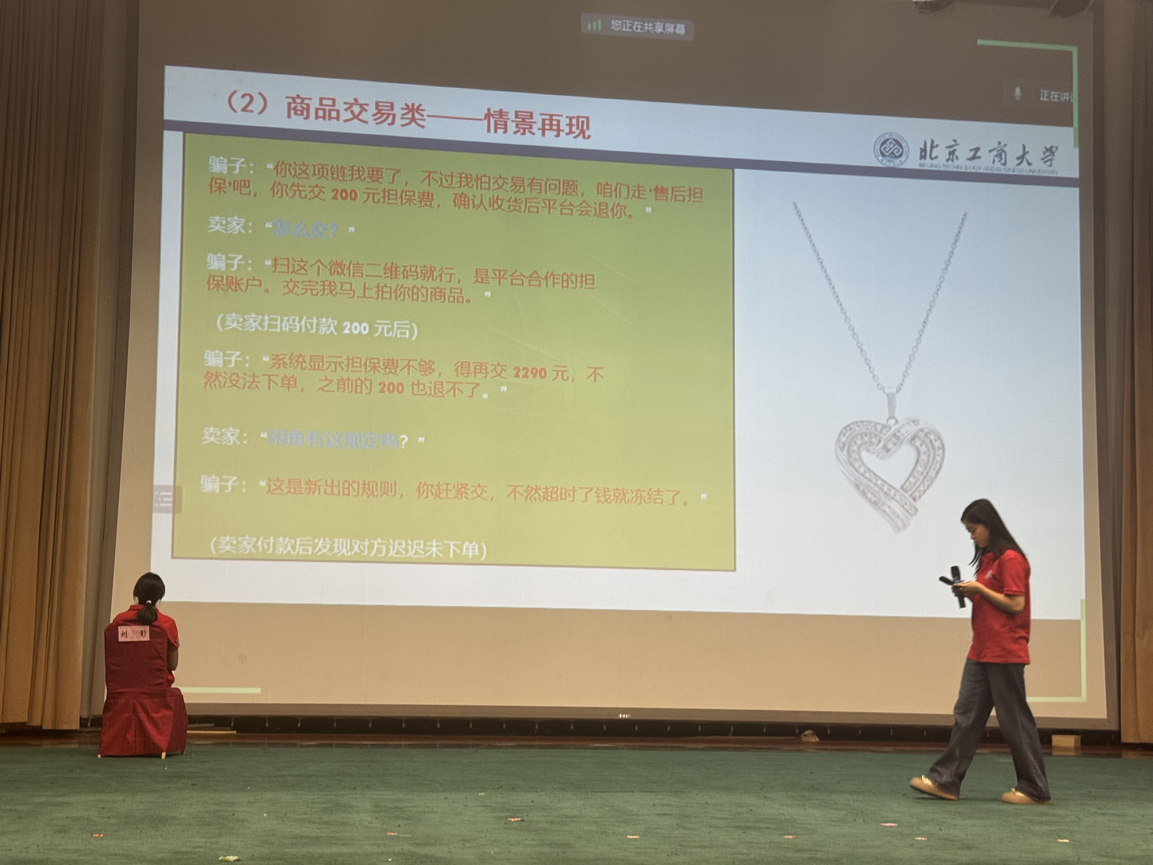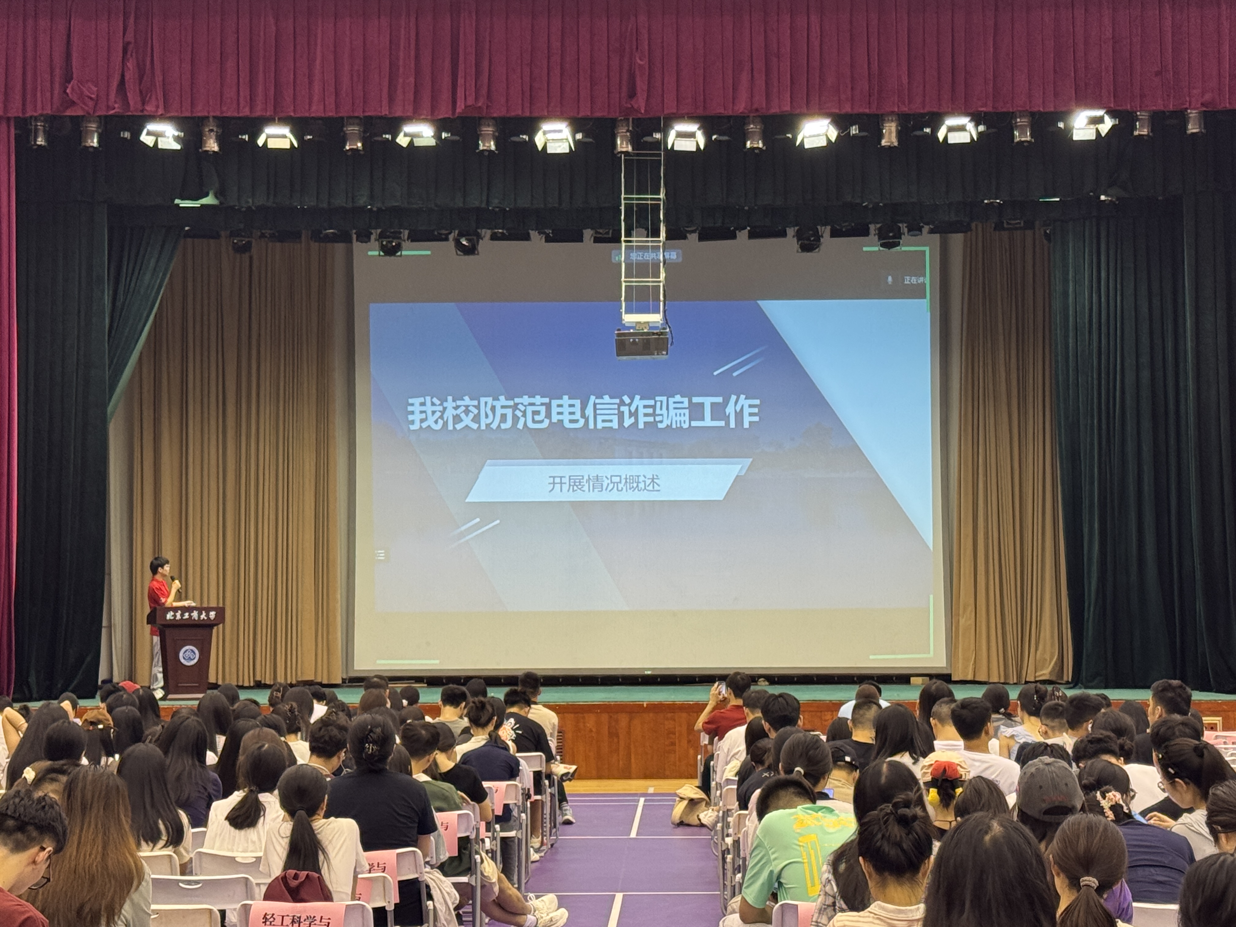 在本、研新生反诈安全教育讲座过程中,6名宣讲组成员分工合作,分别从电信网络诈骗概述、高校常见电信网络诈骗类型、我校防范电信诈骗工作开展情况、防范电信网络诈骗应对策略四个方面进行宣讲。在讲解高校常见电信网络诈骗类型环节,每个案例均通过视频和现场模拟表演短剧的形式来呈现,让听课学生在形象生动地短剧中“沉浸式”了解诈骗的详细过程,为日后可能遇到的诈骗场景留下深刻印象,减少上当受骗的几率。宣传大使还特别有针对性地介绍了我校近三年真实发生的电诈大数据,从电诈高发类别、高发时段、高发学院、高发群体、关键特征等方面进行分析,让新生既能直观感受到电诈风险就在身边,又清楚知道该从哪些方面进行重点防范。这种针对性强、寓教于乐的“朋辈教育”电诈教育宣传形式,较比传统的宣教模式在教育效果上有了很大的提升,是在高校反诈教育路径上的积极创新探索,得到了上级公安部门的高度肯定。