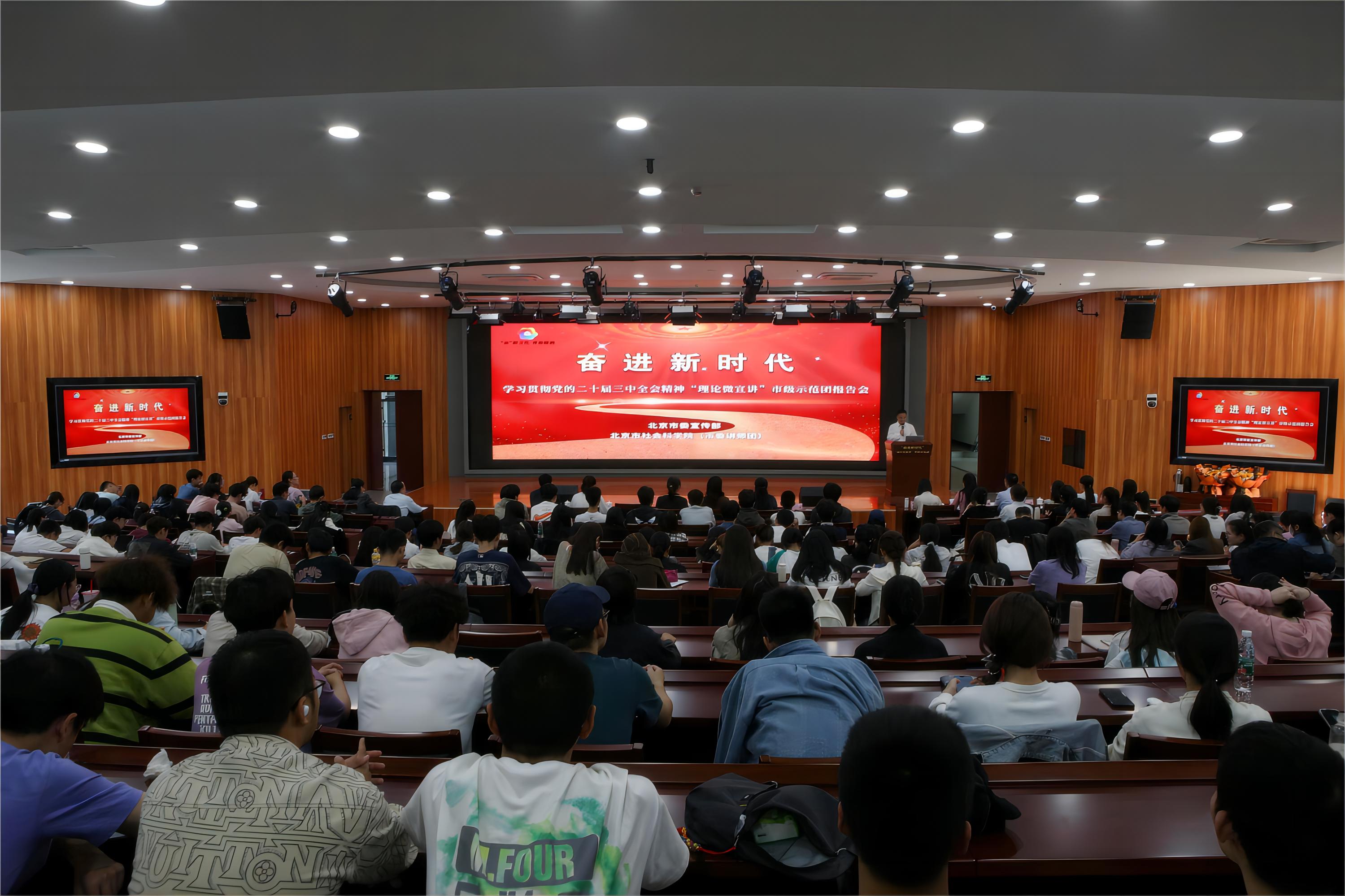 为深入推进党的二十届三中全会精神进校园、进青年群体,结合“‘京’彩文化 青春绽放”行动计划的“信仰行”活动,色情片市学习贯彻党的二十届三中全会精神“理论微宣讲”市级示范团高校巡讲活动于9月24日下午在我校良乡校区举行。来自经济学院、数学与统计学院、马克思主义学院、语言与传播学院的260余名师生现场聆听。