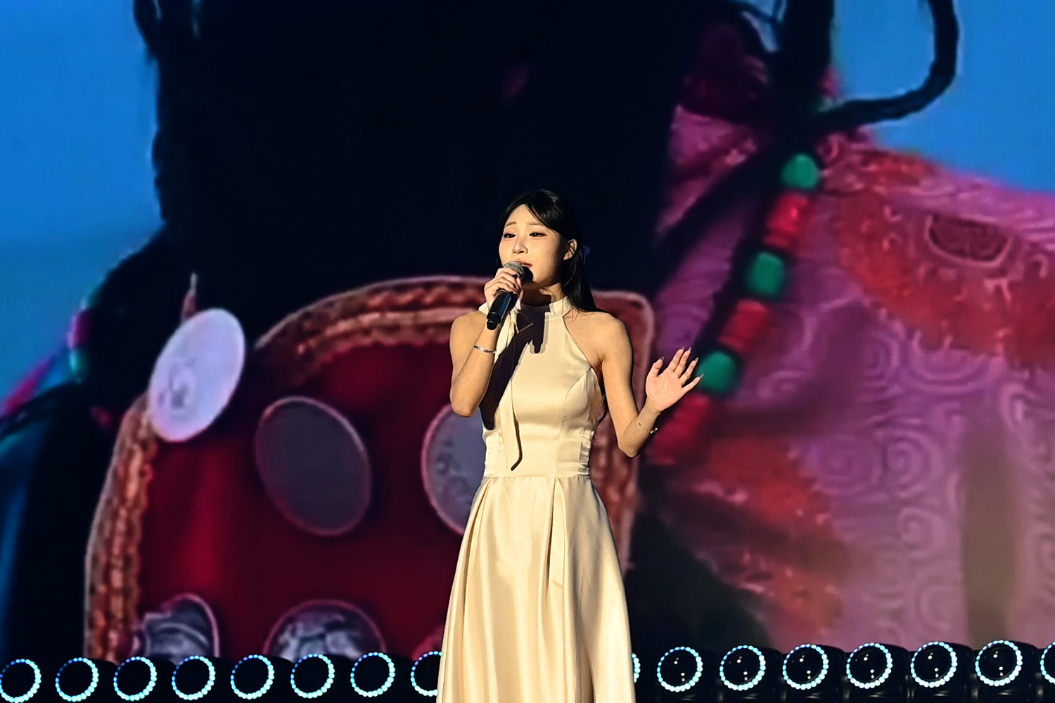 决赛在洋溢着爱国情怀与青春热忱的红色经典歌曲联唱中拉开帷幕。《映山红》《唱支山歌给党听》《红旗飘飘》《我和我的祖国》等脍炙人口的旋律次第响起,选手们以歌声带领观众重温峥嵘岁月,感受蕴含于红色文化中的精神力量,现场红旗挥动,合唱激昂,充分展现了新时代研究生的爱国情感与历史使命感,实现了美育与德育的有机融合。