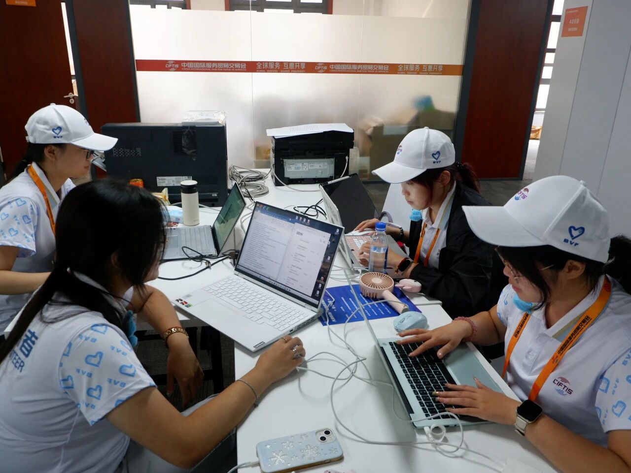 在交易团服务岗,志愿者张敬宜每天接待来自全国各地的参会代表,收集需求、发放问卷、解答咨询。“每一次沟通都是一次学习”,她说,“我不仅提升了表达能力,更理解了服务贸易的多元生态。”