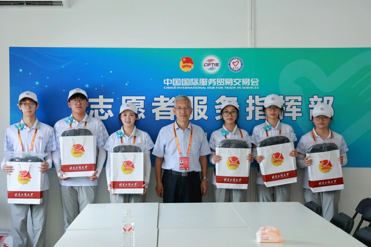 “你们是北工商的骄傲,也是首都志愿者的代表。”李中奇勉励同学们要弘扬伟大抗战精神和志愿服务精神,以更高标准投入工作,圆满完成服贸会各项保障任务,展现新时代大学生的精神风貌。