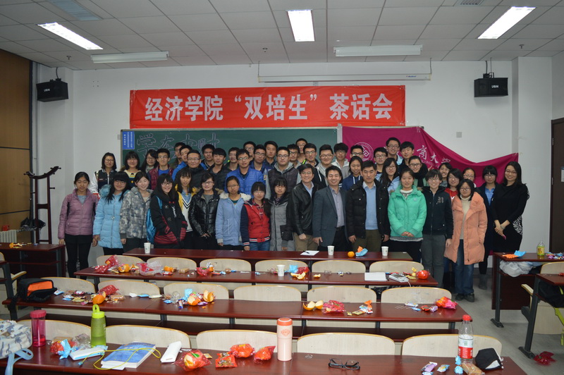徐振宇副院长转达了学校及经济学院对在中央财经大学参与“双培”计划学习的同学的问候。他指出,微积分、数学分析、高等代数等难度较大的课程,对思维训练、专业课程学习以及职业生涯规划都非常有用,希望同学们克服畏难情绪。宁威老师建议同学课前多预习,课后多下功夫,不要有“比不过别人”的想法。随后,同学们分专业与保险学、经济学、金融三个专业的副主任进行了深度交流与沟通,老师们分别解答了同学们提出的关于高等代数、数学分析、微积分、英语、政治经济学的学习方法。另外,同学们还就“双培模式”的相关政策(包括课程衔接、学分和绩点等问题)与老师们进行了交流。