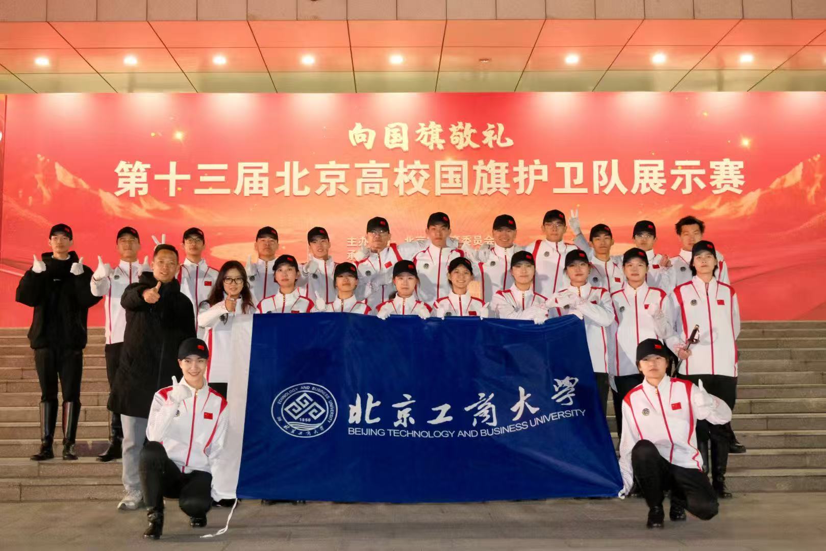 赛场上,北工商国旗护卫队队员精神抖擞、斗志昂扬。升旗展示环节,队员们肩扛国旗、整齐列阵,目光坚毅如炬,步伐稳健有力,伴随雄壮国歌将五星红旗精准升至旗杆顶端,猎猎红旗映照出数月训练的扎实成果;队列展示中,稍息、立正、转体、正步等动作浑然一体,嘹亮口号响彻赛场,充分展现了团队的默契协作与北工商学子奋发向上的精神风貌。