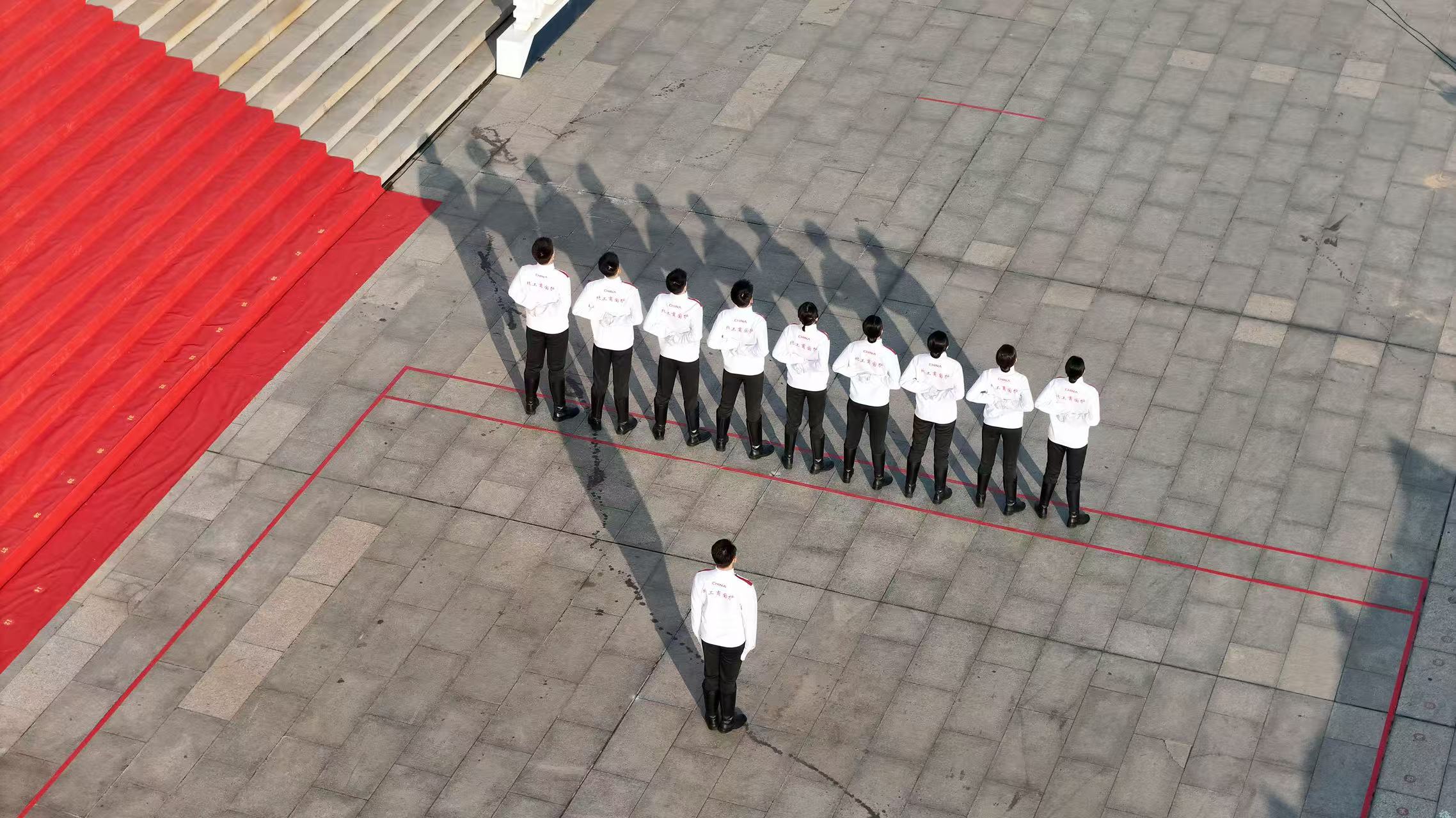 为备战此次赛事,队员们历经三个月集训。从盛夏到立冬,朝阳下有他们集结的身影,月色中回荡着收操的脚步声,汗水浸透训练服成为日常。在步幅标准、转体角度、口号气势等细节上,队员们反复打磨、精益求精,以极致态度锤炼专业技能,用日夜坚守诠释对国旗的无限忠诚。
