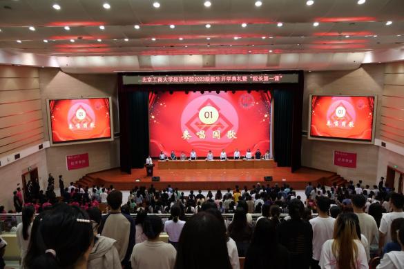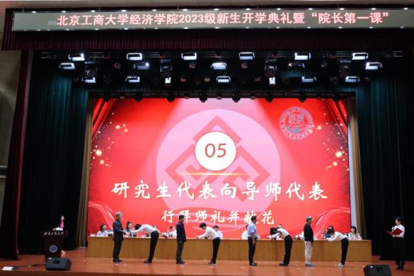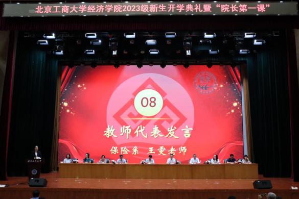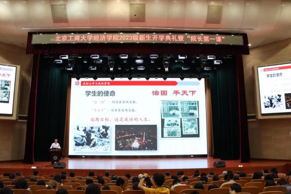 人生新序章,始于初秋;经心向远方,奔赴山海。9月27日下午,经济学院2023级新生开学典礼暨“院长第一课”在良乡主校区A报告厅举行。学院全体领导班子成员、各系教授代表、系主任、2023级本科生班主任、辅导员,以及全体2023级本科生和研究生共计750余人参加本次大会。会议由学院党委副书记李艳春主持。