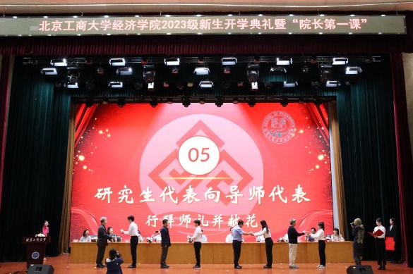 “礼”是中国传统文化的核心,我国素有“礼仪之邦”之称,讲究尊师重道,注重拜师礼仪。在本次开学典礼的拜师仪式中,研究生代表依次向鲲鹏荣誉导师行敬茶礼、插手礼和献花礼,表达最诚挚的敬意与感谢。师徒共进、薪火相传,严肃而庄重的拜师仪式是经济学院尊师重道的生动体现。