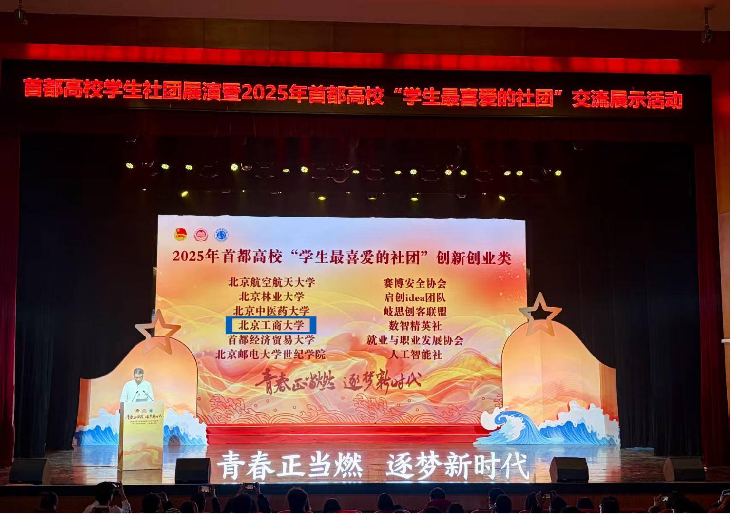此次首都高校“学生最喜爱的社团”评选活动涵盖思想政治、学术科技、创新创业、文化体育、志愿公益、自律互助等六大类别,吸引了近200个优秀社团参与角逐,经过激烈评选,最终评选出36个社团获得“学生最喜爱的社团”称号。我校数智精英社凭借鲜明的育人特色和突出的实践成果,成功入选。社团成员高晨、李绅铭、王广丽作为代表参与了颁奖活动。