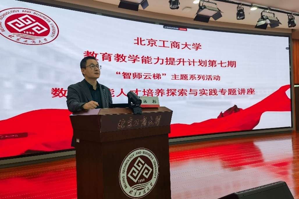 会上,金天教授以《数智赋能人才培养探索与实践》为题,结合自身教学经验,围绕数智赋能人才培养探索与实践、人工智能时代教育模式的变革和教学方法的创新与在场教师进行了深入的探讨。他提出,AI时代的到来对教育领域产生了深远的影响,教育工作者需要积极适应这一变革,利用AI技术改进教学方法。通过比学生更熟练地使用人工智能工具,引导学生合理使用AI,提高教学效率和质量。