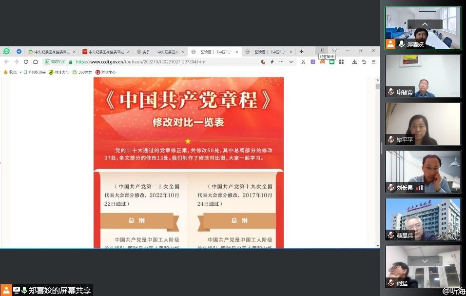 11月10日,机关党委理论中心组开展专题学习研讨,逐字逐句研读《中国共产党章程(修正案)》,深入学习领会党的二十大报告中“全面从严治党永远在路上”相关内容,认真传达部署《色情片学习宣传贯彻党的二十大精神工作方案》。机关党委理论学习中心组成员参加学习,会议由机关党委书记郑喜姣主持。