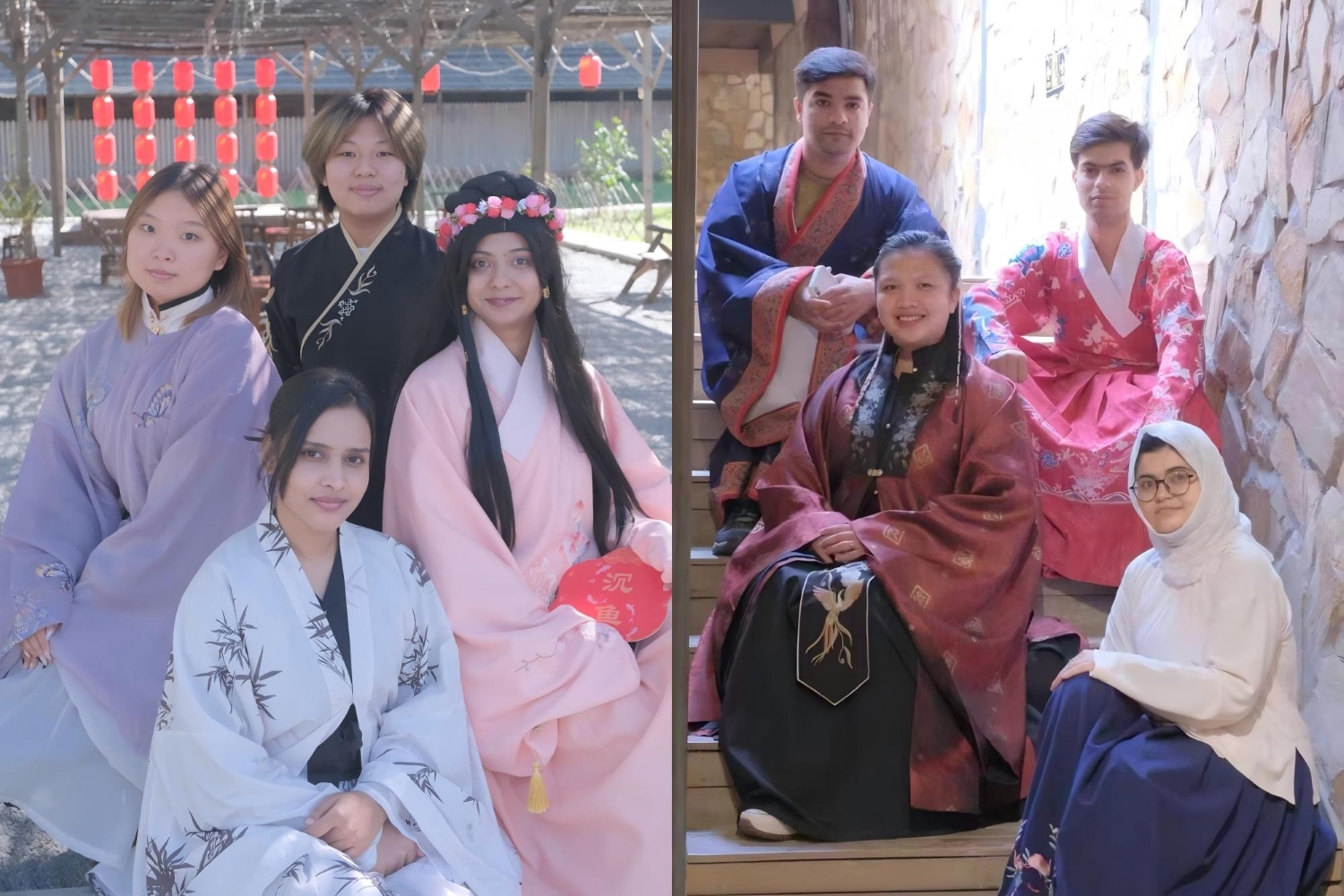 房山区修德谷是弘扬中国文化的开放式教育基地,是团中央挂牌的“在华留学生的第二课堂”。当天恰逢中国的传统节日重阳节,活动伊始,中外学生换上中国古代传统服装,在山谷中登高远望,沉浸式体验汉服文化,以一场穿越时光、跨越空间的意境,在中国传统节日庆祝礼仪和民俗体验中感受中华传统文化底蕴。