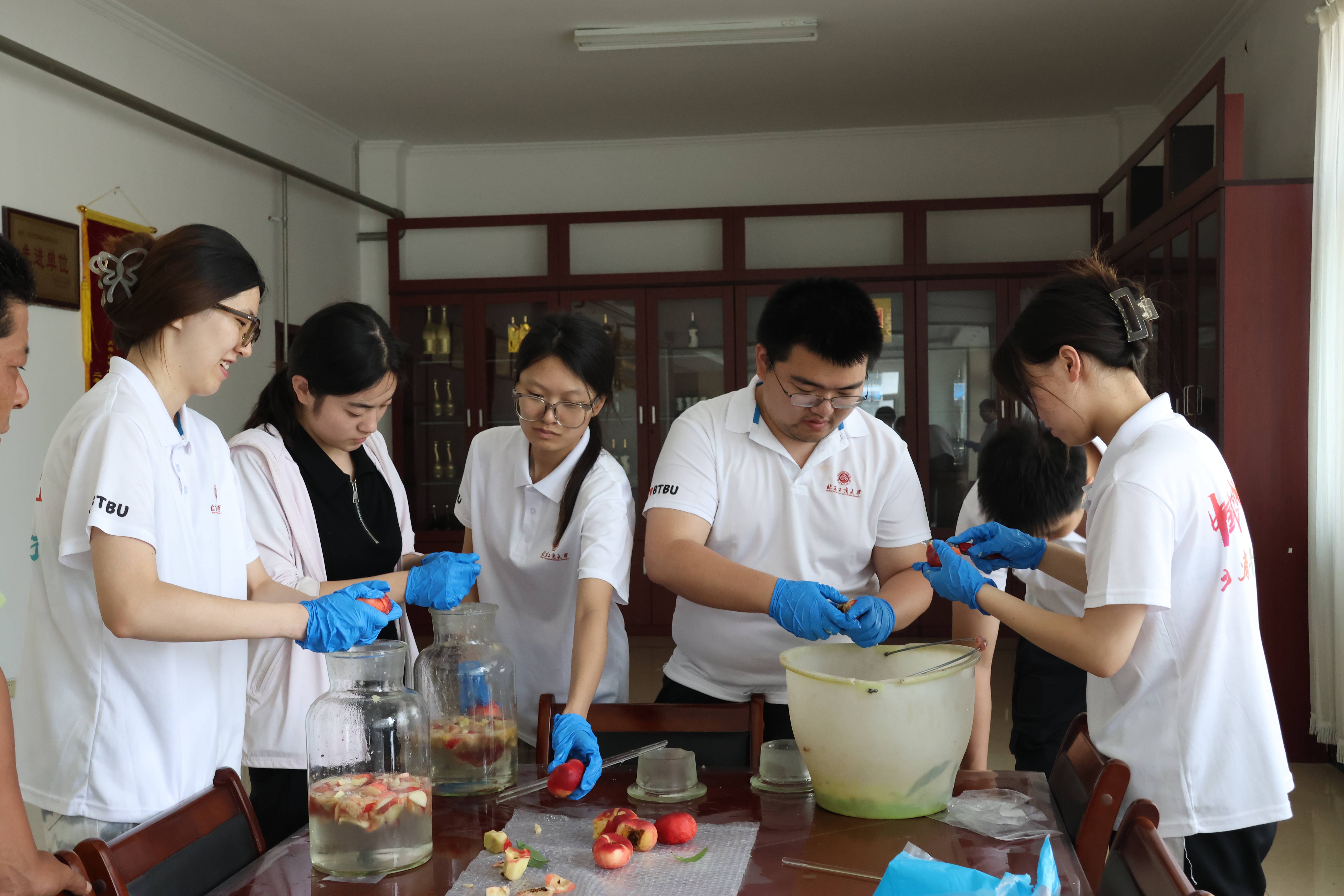 食品与健康学院暑期社会实践团,深入平谷区大华山镇,策划大华山镇大桃品牌传播推广活动,提升大桃品牌文化内涵。实践团把课堂学习和乡村实践紧密结合起来,充分发挥当地的资源优势,围绕平谷区特色大桃开启了桃酒酿造制作实验,把“实验室”建在桃林田间,创新桃酒酿造技艺,亲手酿造、反复实验,旨在提升平谷大桃的附加值,打造具有地方特色品牌,探索一条创新的产业发展道路,带动当地经济发展。近日,食品与健康学院《裕酿新途,同心共建--科技赋能助力乡村产业融合》项目入选首都高校师生服务乡村振兴行动计划。