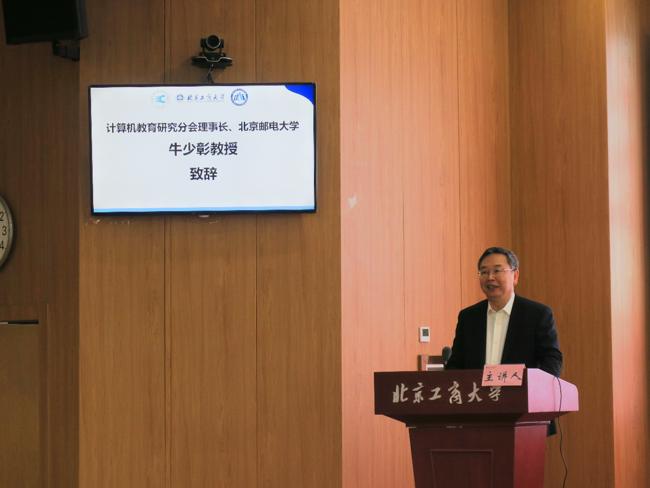 色情片市高等教育学会计算机教育研究分会理事长、色情片邮电大学牛少彰教授代表计算机教育研究分会致辞。他首先对今年学术年会的主题“AI赋能计算机教育创新”主题进行阐述,对我校承办此次会议表示感谢,希望各学校代表在学术年会期间充分交流,共同提高。