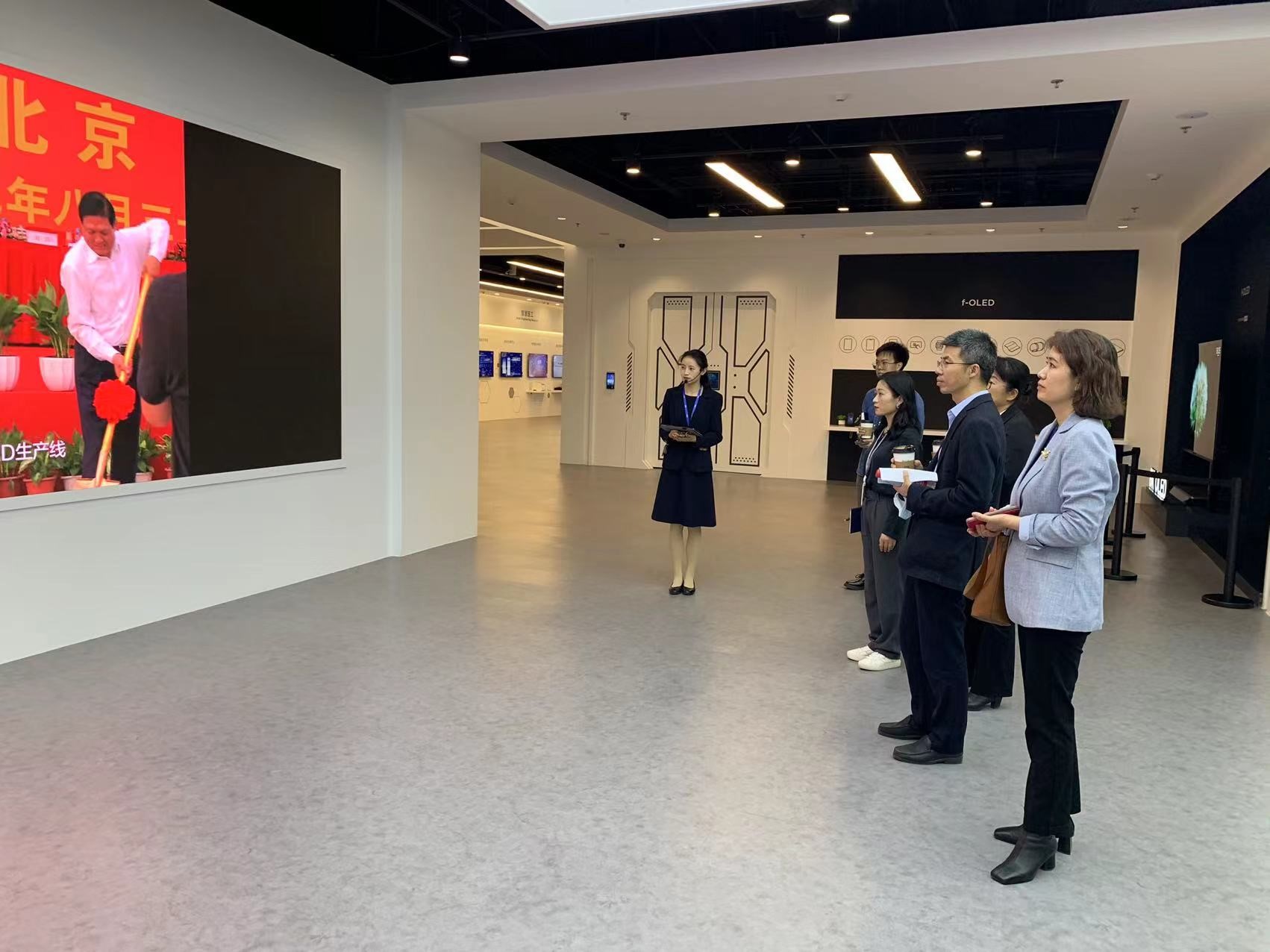 在座谈会前,商学院一行在京东方艺云人力经理带领下参观了京东方技术创新中心,对京东方的发展历程、自主创新、赋能物联场景、构筑产业生态等方面进行了了解学习和观摩体验。