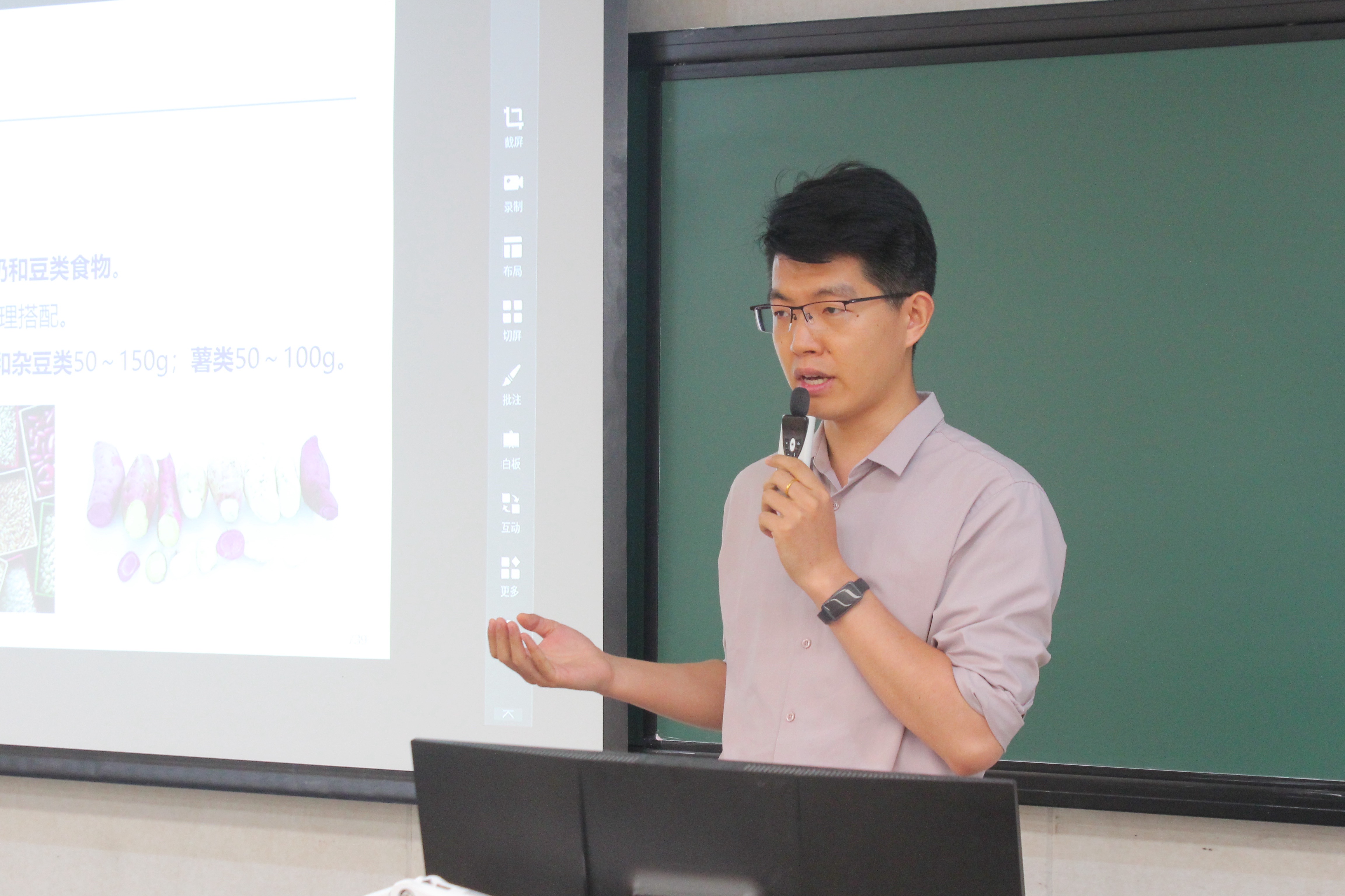 陈鑫围绕《中国居民膳食指南2022》进行了详尽解读,为听众提供了一系列切实可行的健康生活指南。逐一阐述了指南中的八大核心准则,从食物多样性、吃动平衡到合理膳食结构、健康饮食习惯等多个维度,全面覆盖了日常饮食的方方面面,旨在帮助学生将理论知识转化为实际行动,促进健康生活方式的养成。