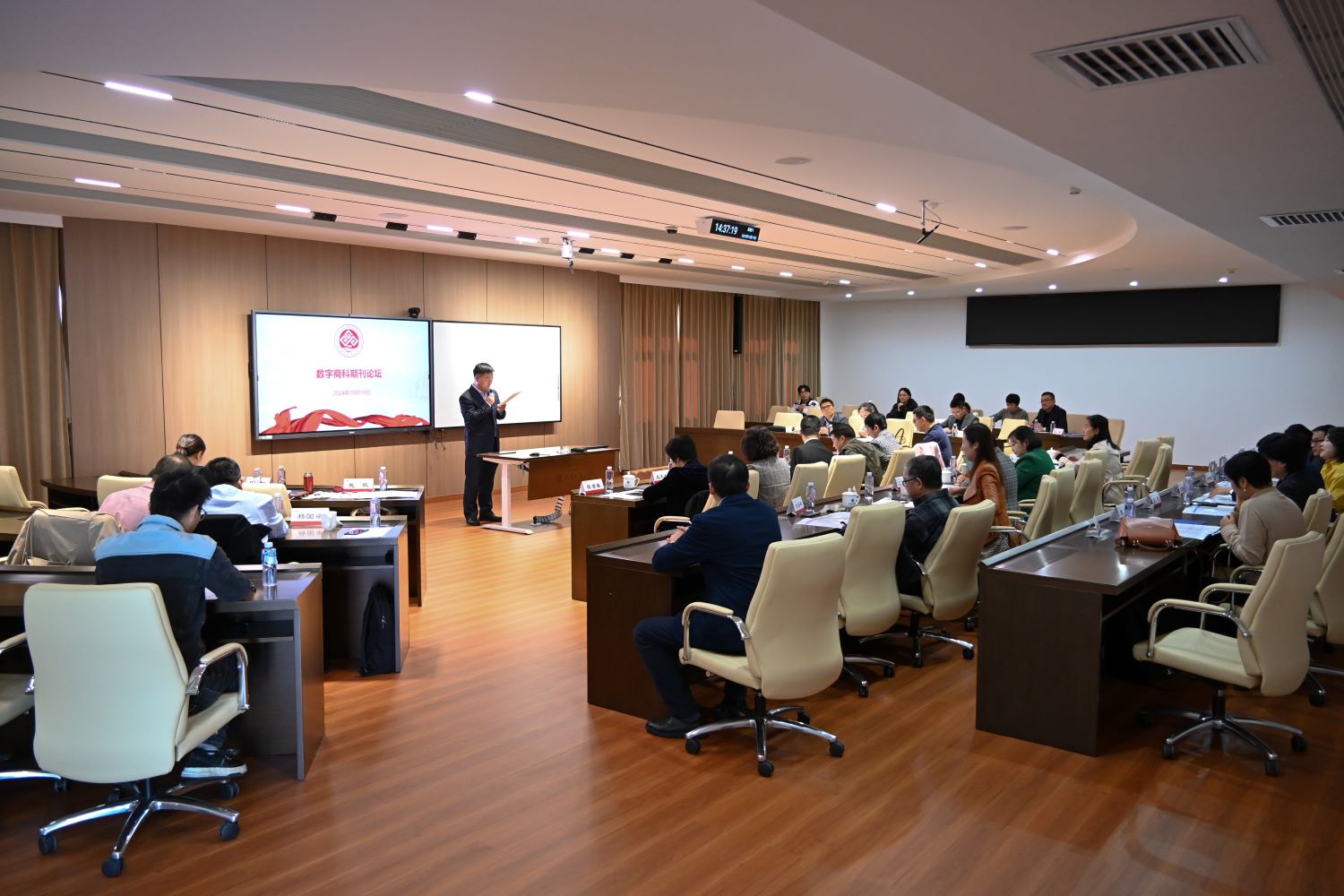 本次会议共包括两个阶段,上半场为“数字商科期刊论坛”。论坛由期刊管理中心主任施枫主持。毛新述为论坛致辞。